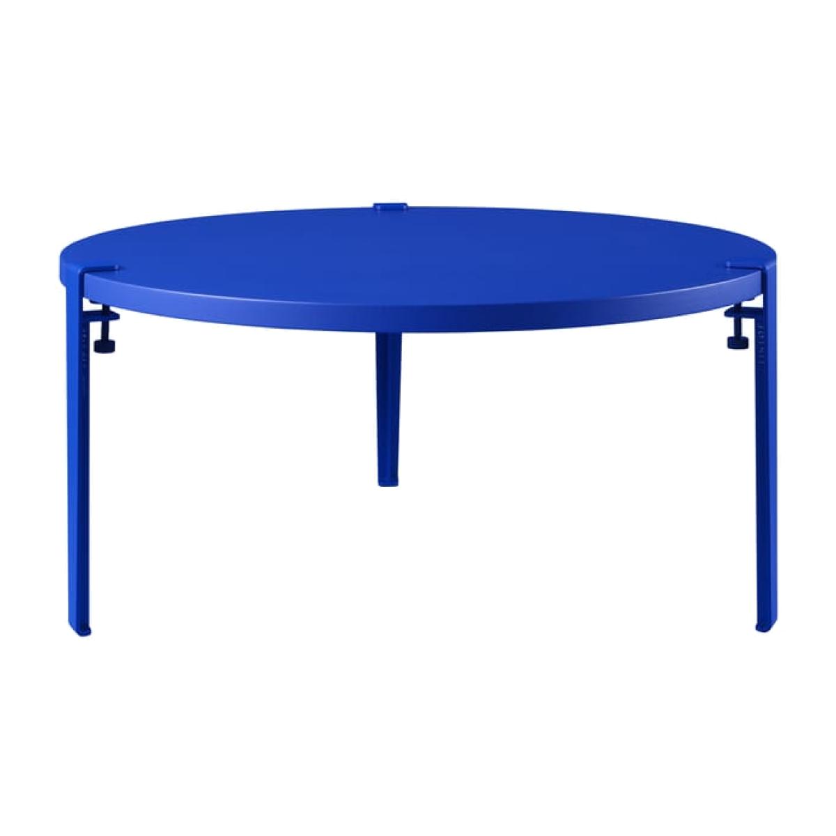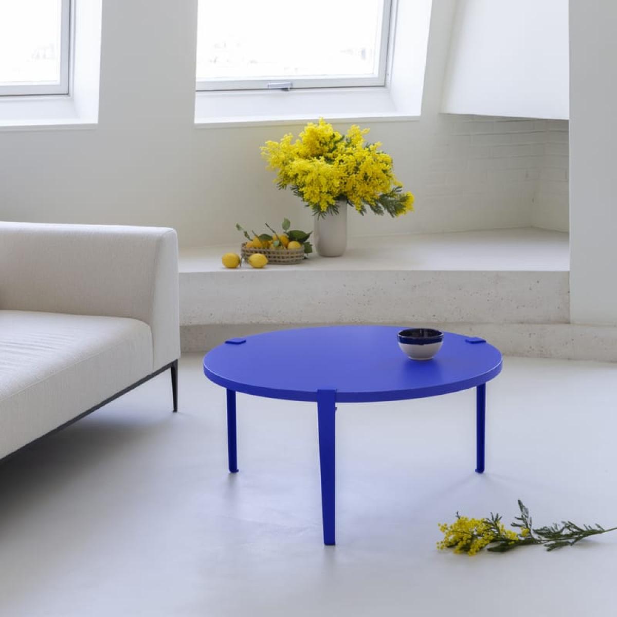 TIPTOE has joined forces with Archives Yves Klein to create an exclusive collection of limited-edition pieces. The pieces are stamped and screen-printed in Klein Blue. This collaboration celebrates the 95th birthday of French artist Yves Klein. A major artist of the 20th Century, Yves Klein has made his mark on history with a material-colour that has become legendary: An ultramarine blue of incomparable intensity which is, according to the artist, "the most perfect expression of blue" and which he uses as a vehicle for his quest for infinity and immateriality. This inventions, which he named "IKB" (International Klein Blue) characterises many of his pieces, including his monochrome work. To showcase this legendary blue, TIPTOE has spent many months working tirelessly to formulate a colour that does justice to the intensity of Yves Klein's blue, which required countless tests in order to get just the right formulation. Composed of a stained solid oak tabletop and three 43 cm steel legs, the BROOKLYN coffee tabletop offers a minimalist look and, thanks to its tidy diameter of 90 cm, it can easily adapt into any interior style. The wood used is sourced from sustainably managed European forests (PEFC label). The table comes disassembled in flat packaging, which limits its carbon footprint during transport.