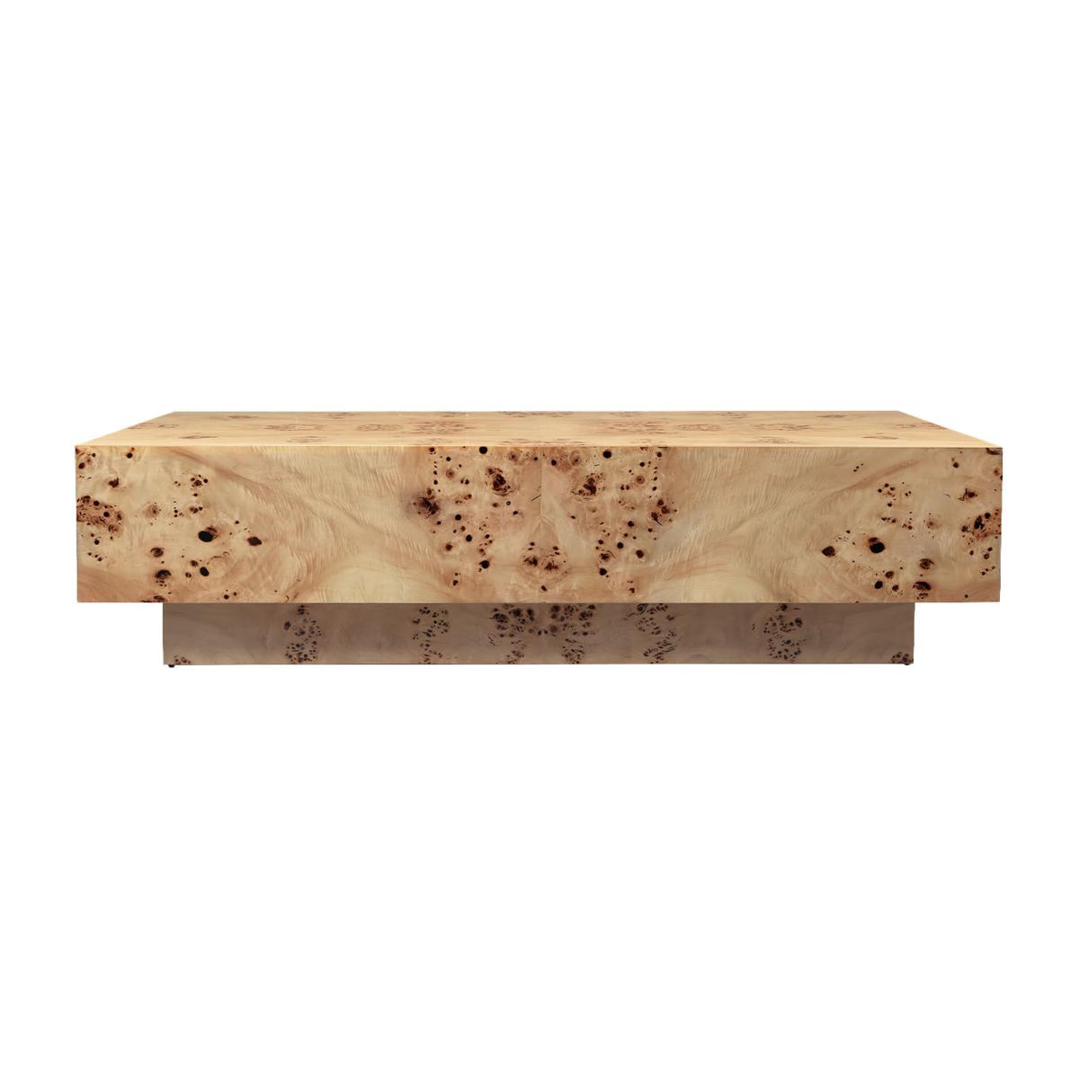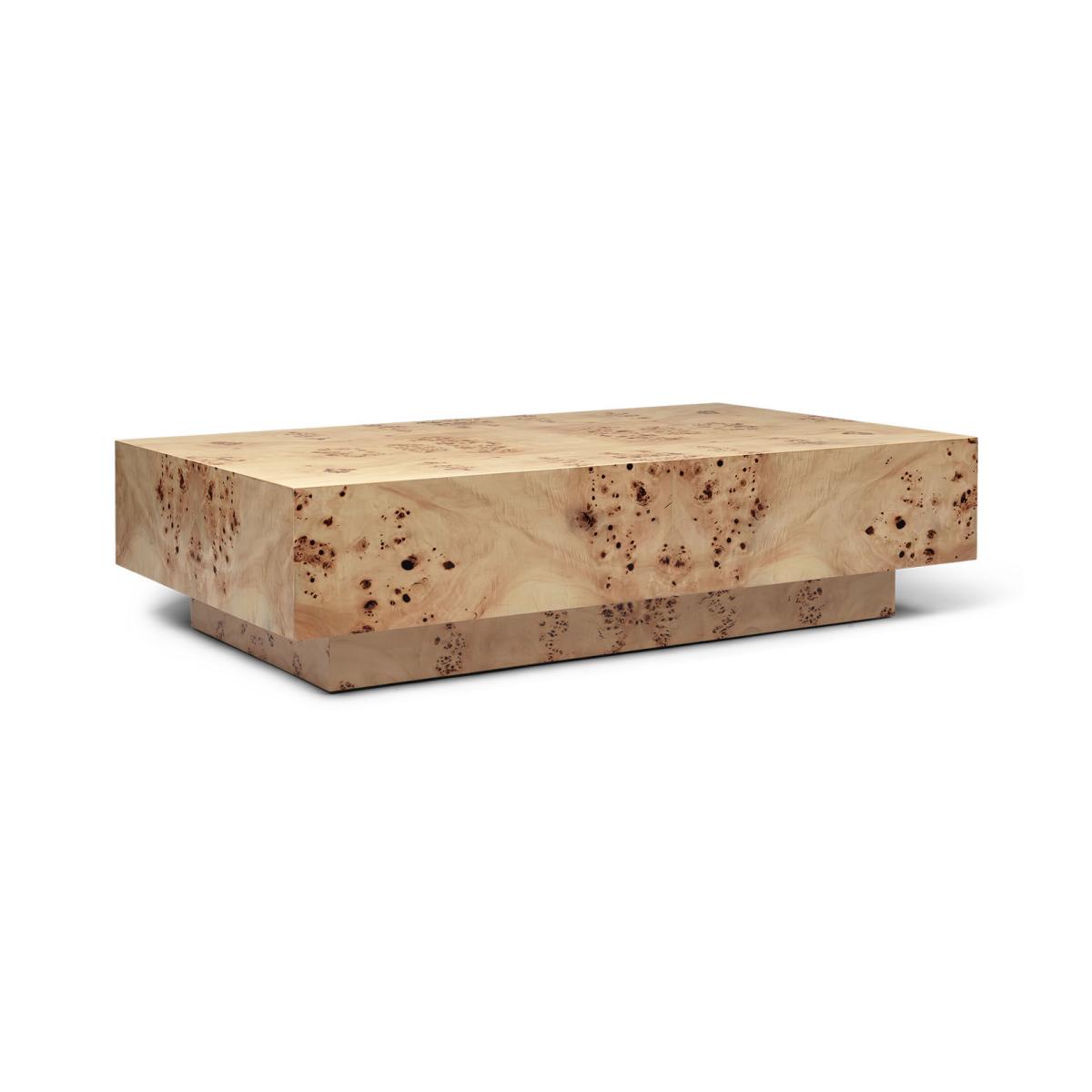 Natural and sophisticated... This superb Coffee table is made from FSC-certified burl veneer. Reading glass, or burl wood, is a growth that appears on the trunk of certain trees. Highly sought-after by cabinetmakers for the manufacture of luxury furniture, Reading glass reveals superb patterns and a hue that makes the wood resemble marble.