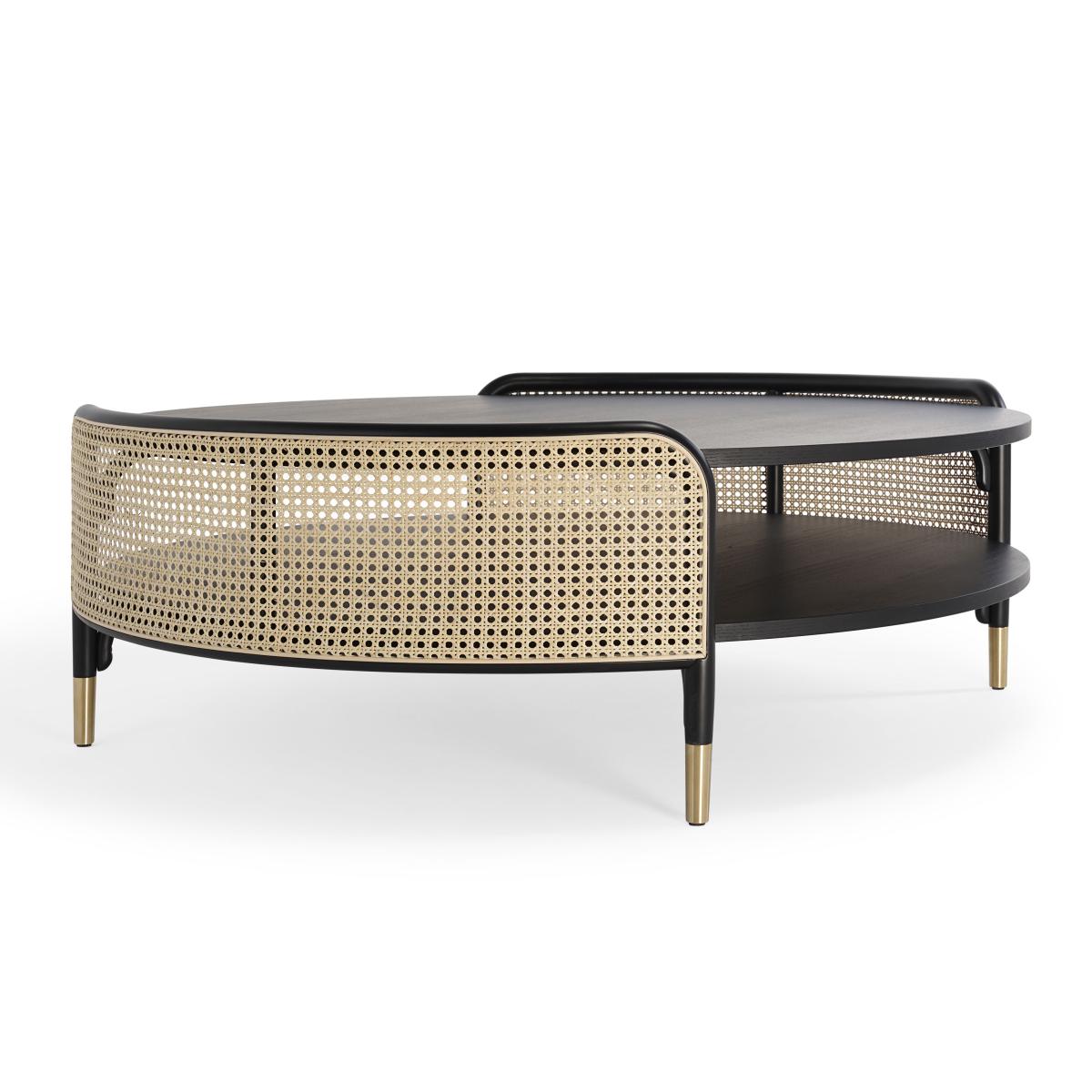 Italian-Danish designer duo Gam. Fratesi have created the DETOUR coffee table with retro charm and art déco accents. This elegant coffee table offers a stunning combination of colours and materials. The Vienna straw - a material particularly appreciated by the Wiener GTV Design brand - is the determining element of the project. The Détour coffee table is characterised by its incredible decorative panels in straw canework, giving it a big personality. These two panels lightly frame the two black, lacquered wood surfaces, partially concealing the storage contents. The canework panels are surrounded by a curved beech frame that is extended to form the legs. Gilded brass end pieces add a sophisticated dimension to the look. Rich materials, high standards of quality, exceptional finishes and an original form, all wonderfully characteristic of the Wiener GTV Design spirit. Drawing on the tradition and way of thinking of Michael Thonet, Wiener GTV Design develops products rooted in an innovative, meticulous design process. A team of designers, creators and artisans produces unique products of exceptional craftsmanship. Product sustainability is at the centre of the development process.