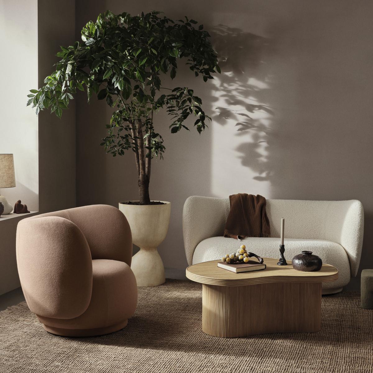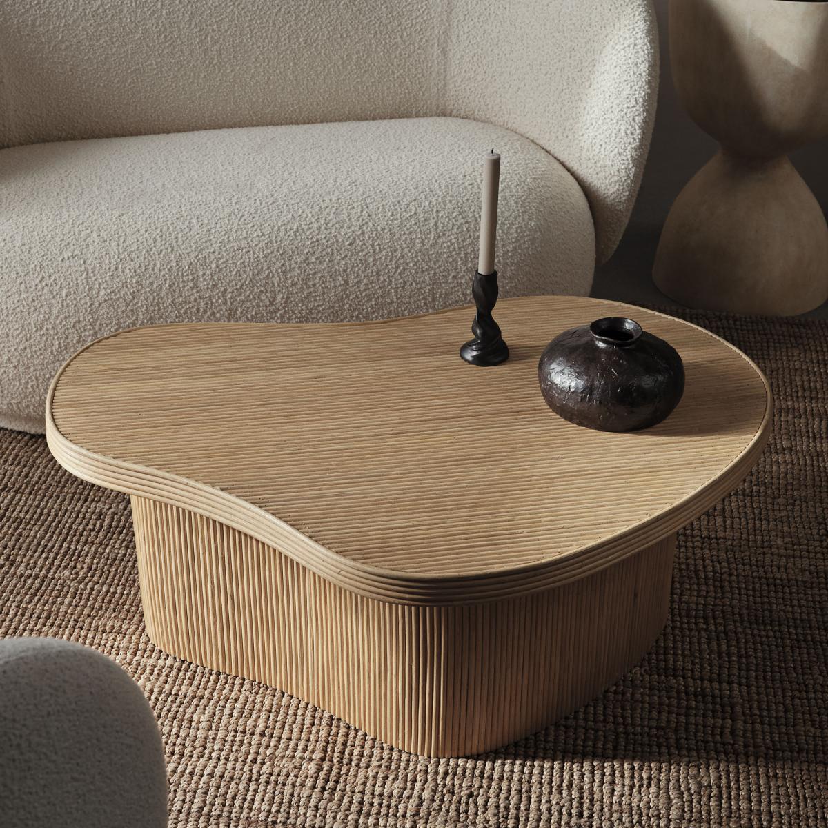 I love this coffee table for its organic, sculptural form and natural rattan finish, which adds warmth and texture to any living space. It works particularly well in interiors with a boho, Scandi, or coastal aesthetic, where its soft curves can soften angular furniture and create a relaxed vibe. Practical styling tips include layering it with a mix of neutral-toned trays, ceramic vessels, and small planters to enhance its earthy appeal. Due to its versatile size, it’s perfect for both smaller living rooms and larger open-plan spaces, providing a functional surface without overpowering the room’s overall flow.