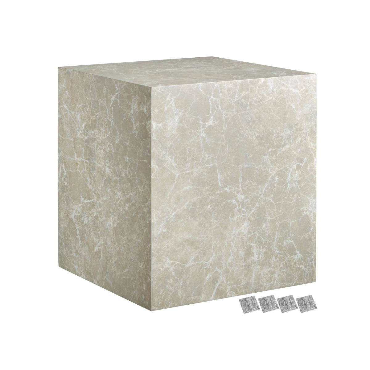 This modern cube-shaped coffee table or side table adds a sophisticated touch to any room. The coffee tables perfect square silhouette with clean, geometric lines creates a minimalist aesthetic, while its versatile design makes it ideal for a range of uses from a coffee table to an accent piece or even extra seating. The perfect compliment to round tables, it contrasts with wood floors in your living room and is a quick way to add interest to your home. This type of statement piece would work well in contemporary, modern, or luxury interior settings, adding both functionality and visual impact to your living room. The included floor protectors made of soft felt also prevent scratches when moving. This table not only offers a stylish design but also provides ample storage space, making it a practical addition to your furniture. The cube design allows it to fit seamlessly with other furniture pieces, such as chairs, and complements a variety of modern settings. Available in black marble, travertine and concrete looks.