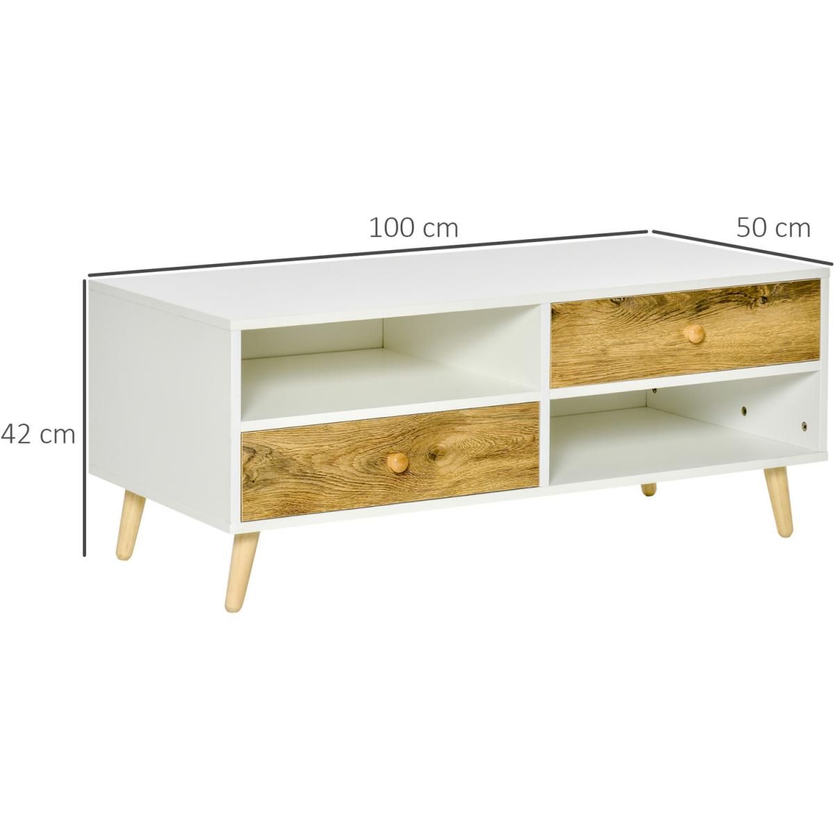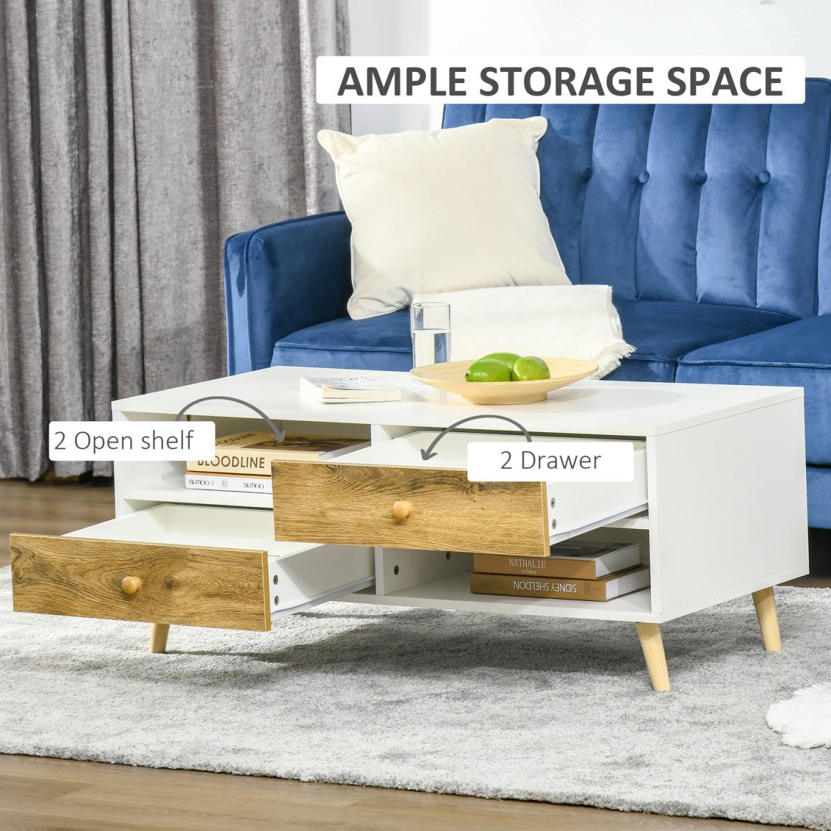 This stunning coffee table from HOMCOM is a perfect addition to your home furniture in your living room, bedroom, study, and more indoor spaces. The elegant design makes it look beautiful in any kind of style. Made of quality particle board, tough and stable. Comes with 2 drawers and 2 shelves for meeting your storage needs. A large tabletop provides a reliable place to keep drinks or magazines close to you. A practical coffee table that can bring you more convenience in daily life.