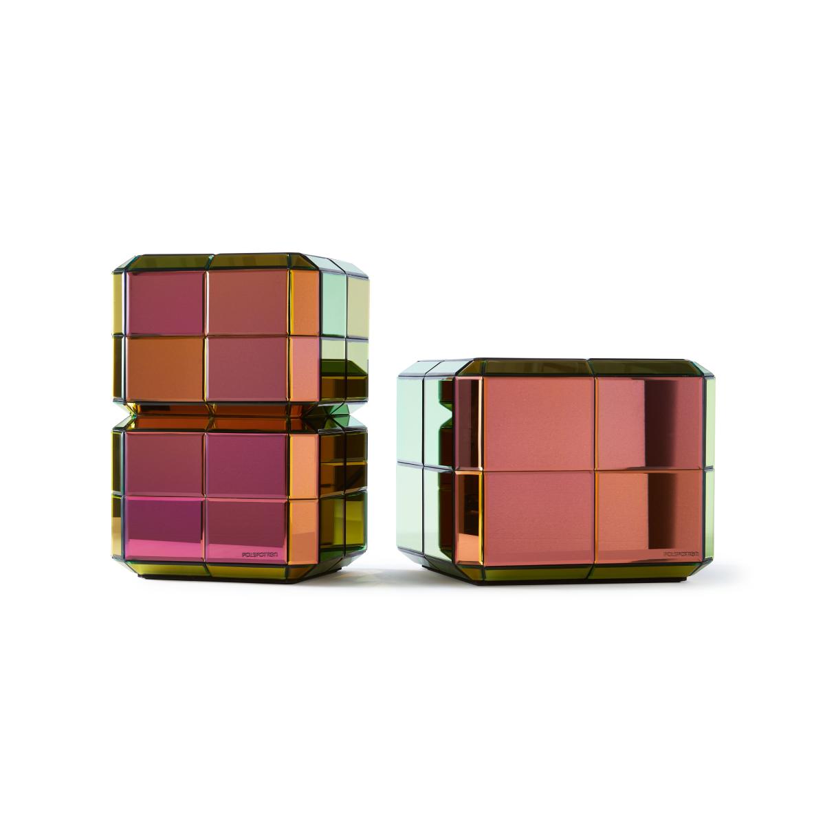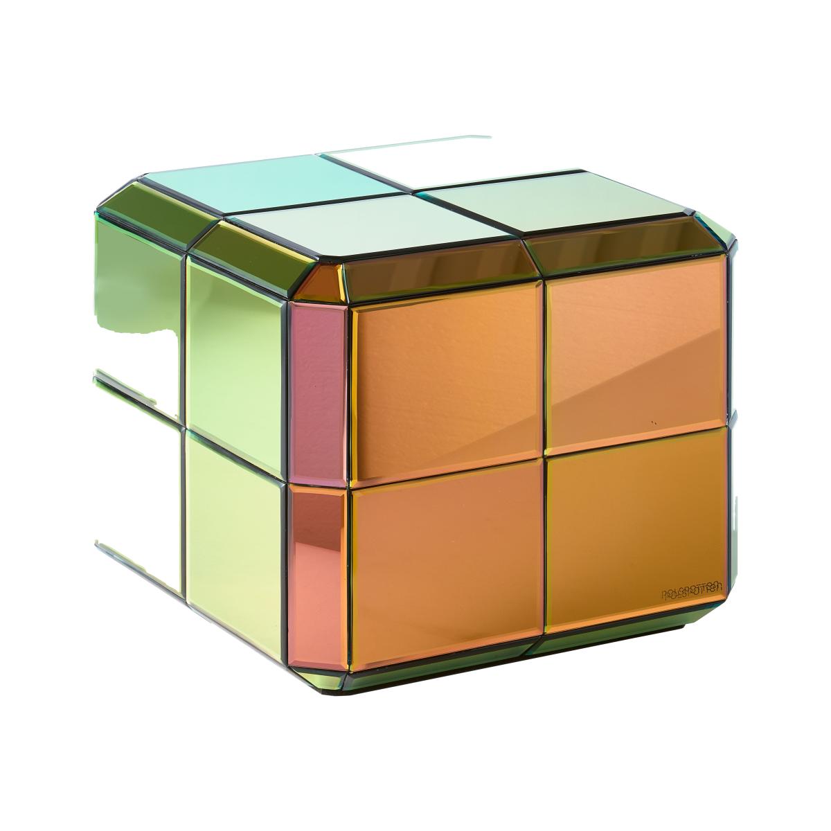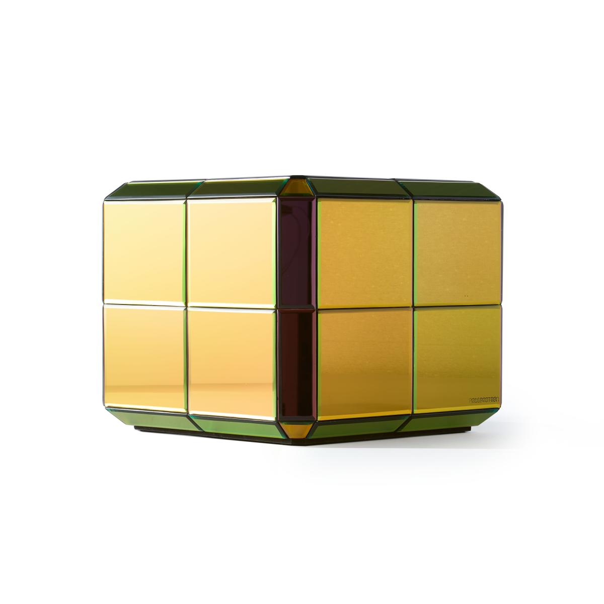 Add an original, refined touch to your interior... The Pixel coffee table stands out with its slender, rectangular shape as well as its astonishing neo-futuristic look. This MDF coffee table is entirely covered with a mosaic made up of a multitude of iridescent glass tiles. The mirrored glass has four different colours (gold, blue, green, pink): each is only visible from a different angle. Depending on the light and viewing angle, the tints keep changing, offering gradations in assumed colours, spectacular and iridescent. The embossed patterns show off this material, which seems to be made of light. With its iridescent colours, whose appearance changes as you move around, this piece of furniture creates a direct interaction with the user. Influenced by architecture and pixel art, this coffee table is an irresistible eye-catcher: it will become a centrepiece of your decor. You can mix the sizes to achieve a breathtaking composition.