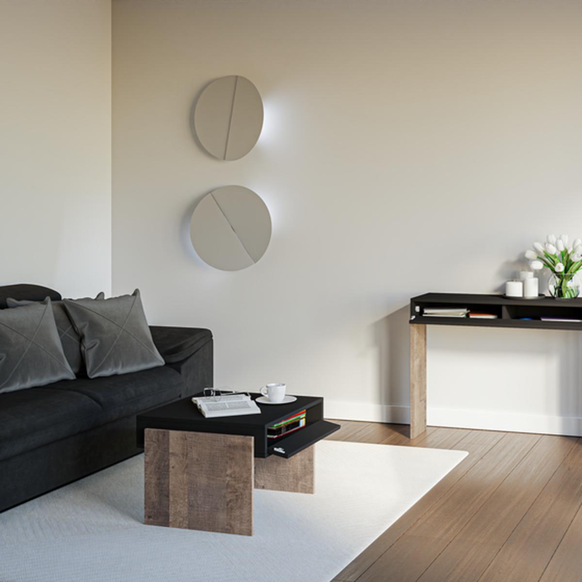 Duo storage: Comes with two cabinets and two shelves - this modern coffee table has room for keeping living room essentials stored together. Bold design: Modern Design , with wood-effect accents bringing a natural touch. Solid legs: Strong support for this coffee table with storage, keeping it steady and balanced. Under-table clearance: It's easy to clean underneath this living room table, Specifications: Colour: oak/black