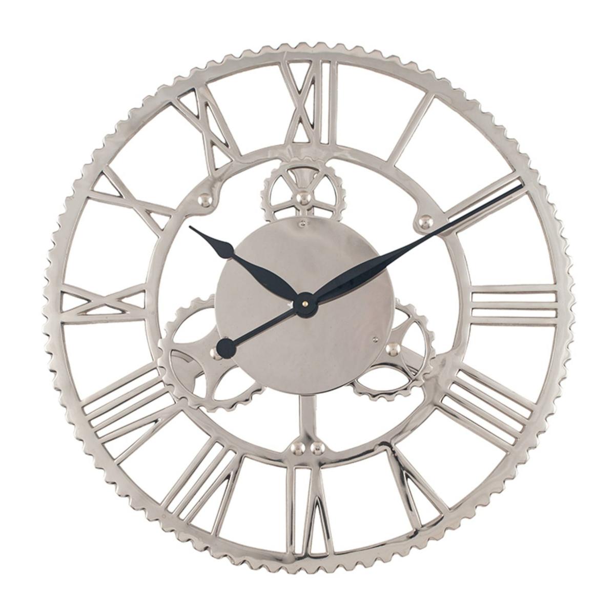 Cog Design Round Wall Clock in Shiny Nickel The Cog Design Round Wall Clock is of Industrial design with a stylish twist. This striking piece is finished with a high shine nickel. This highly detailed timepiece doubles up as a work of art, and will be a talking point in any room.   Cog Design Round Wall Clock in Shiny Nickel The Cog Design Round Wall Clock is of Industrial design with a stylish twist. This striking piece is finished with a high shine nickel. This highly detailed timepiece doubles up as a work of art, and will be a talking point in any room.
