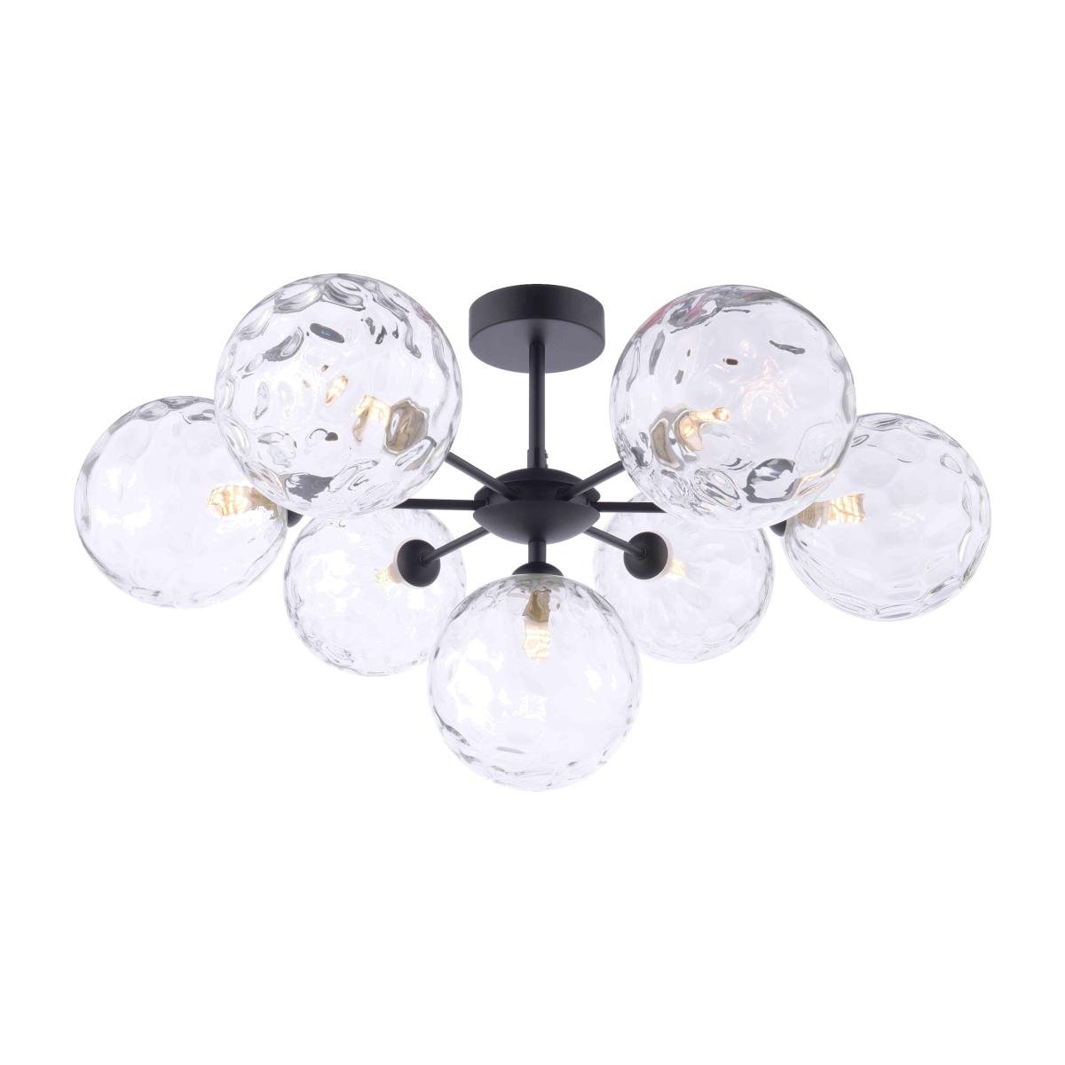 The perfect combination of retro and modern, this matt black and dimpled glass semi-flush ceiling pendant light is a very cool addition to any room. Why you'll love it This sixties-inspired semi-flush ceiling light is cool and contemporary. Updated futuristic style. 7 clear glass light shades have a dimpled effect. On-trend matt black fittings. Semi-flush design is ideal for lower ceilings. This semi-flush ceiling light is part of the Furniture Village lighting collection. What you need to know Metal base, glass shades. Requires 7 x G9 max. 40W bulbs (not included). Professional installation recommended. Base dimensions Height: 32 cm (130 in). Diameter: 59 cm (24 in). Shade dimensions Height: 15 cm (6 in). Diameter: 14 cm (6 in).