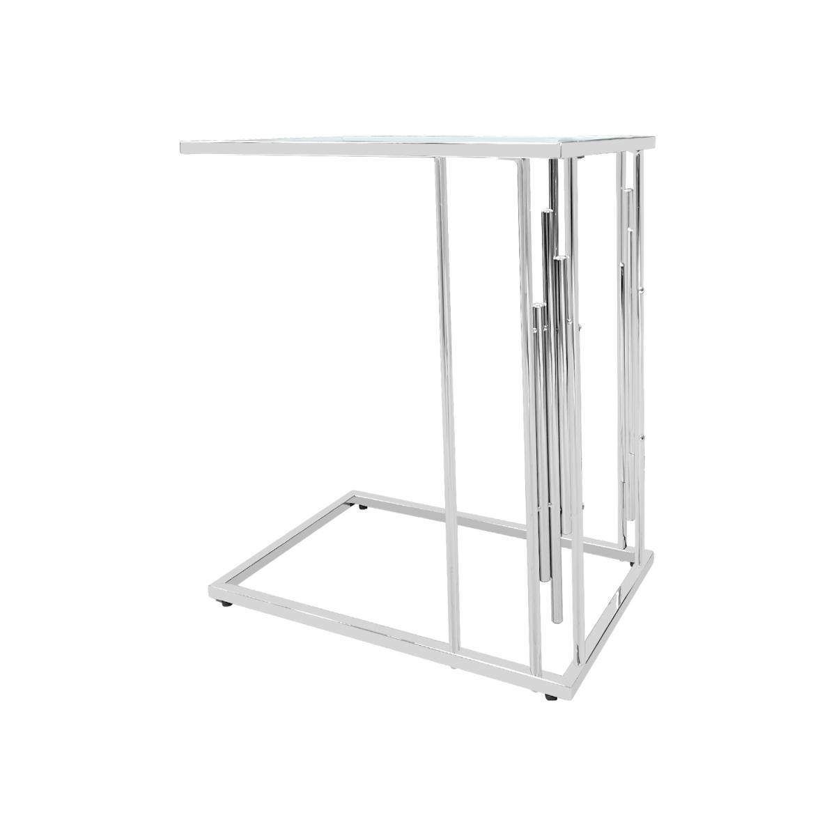 I love this little side table for its sleek, contemporary look; the chrome finish adds a touch of sophistication, making it versatile across various interiors. It works particularly well in modern, minimalist spaces or as a chic addition to more transitional settings. Practical styling tips include pairing it with a cosy lamp or a small stack of books to create an inviting corner, while the glass top lends itself to displaying decorative items like a small plant or a statement ornament. Its slim profile also makes it ideal beside a sofa or armchair without overcrowding the space.