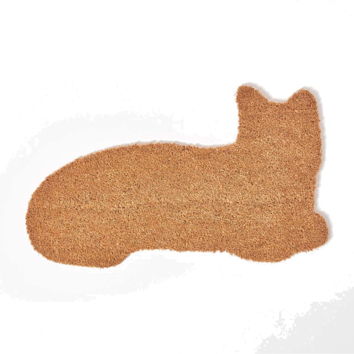 A coir sitting cat shape doormat with PVC backing. Measuring 75 x 45 cm and 1.7cm thick, this elongated cat shaped door mat is ideal for entrance halls, patio areas and out houses such as sheds and garden garages. In the shape of a small cat, the coarse coir material will easily clean dirt and dust of shoes before entering your home. Backed with a PVC rubber backing, it is non-slip to ensure stability when stepping on and off. Suitable for all floorings, use on carpet, wood, lino and laminate. Part of Homescapes home and garden accessories collection.