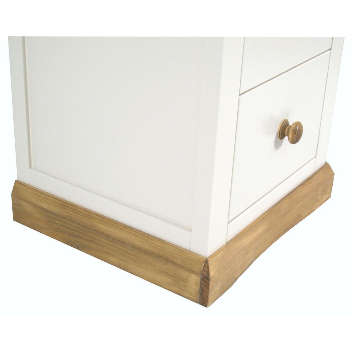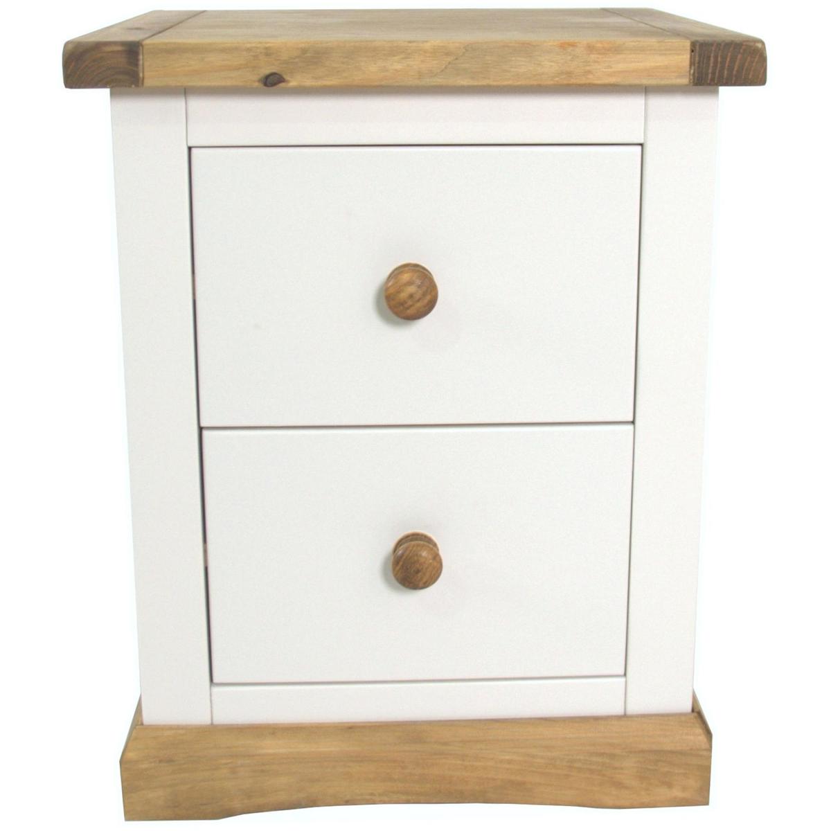 The Colby 2 Drawer Wide Bedside has a simple and pleasing design produced by skilled craftsmen to the highest standards using solid pine and veneers. This item has a high quality hand waxed finished 30mm thick top with contrast white body, deep drawers and wooden knobs and features simple construction for easy assembly. This product will feel at home in any environment. Please note, unfortunately we cannot deliver this item to the Channel Islands.
