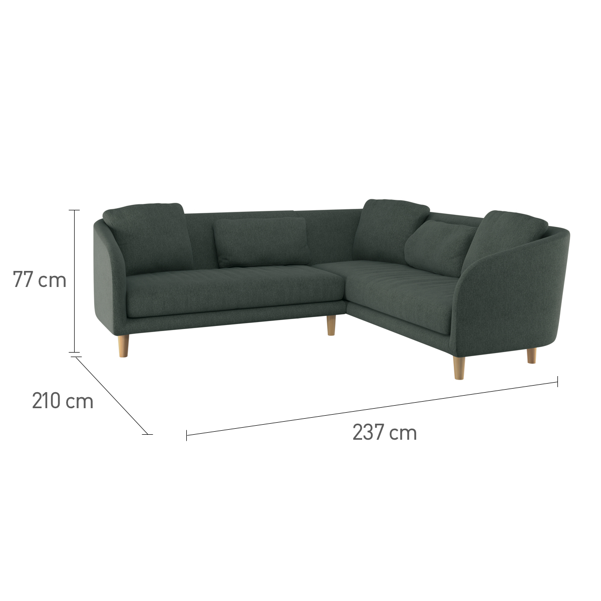 Curvy and feminine, the Colby charcoal fabric left arm corner sofa has a padded, wrap around backrest and a feather-topped seat cushion. A luxurious, feather-filled scatter cushion adds an extra level of comfort to the elegant sofa, which is exclusive to Habitat. The Colby design is available in a variety of configurations and a wide choice of fabrics and colours.
