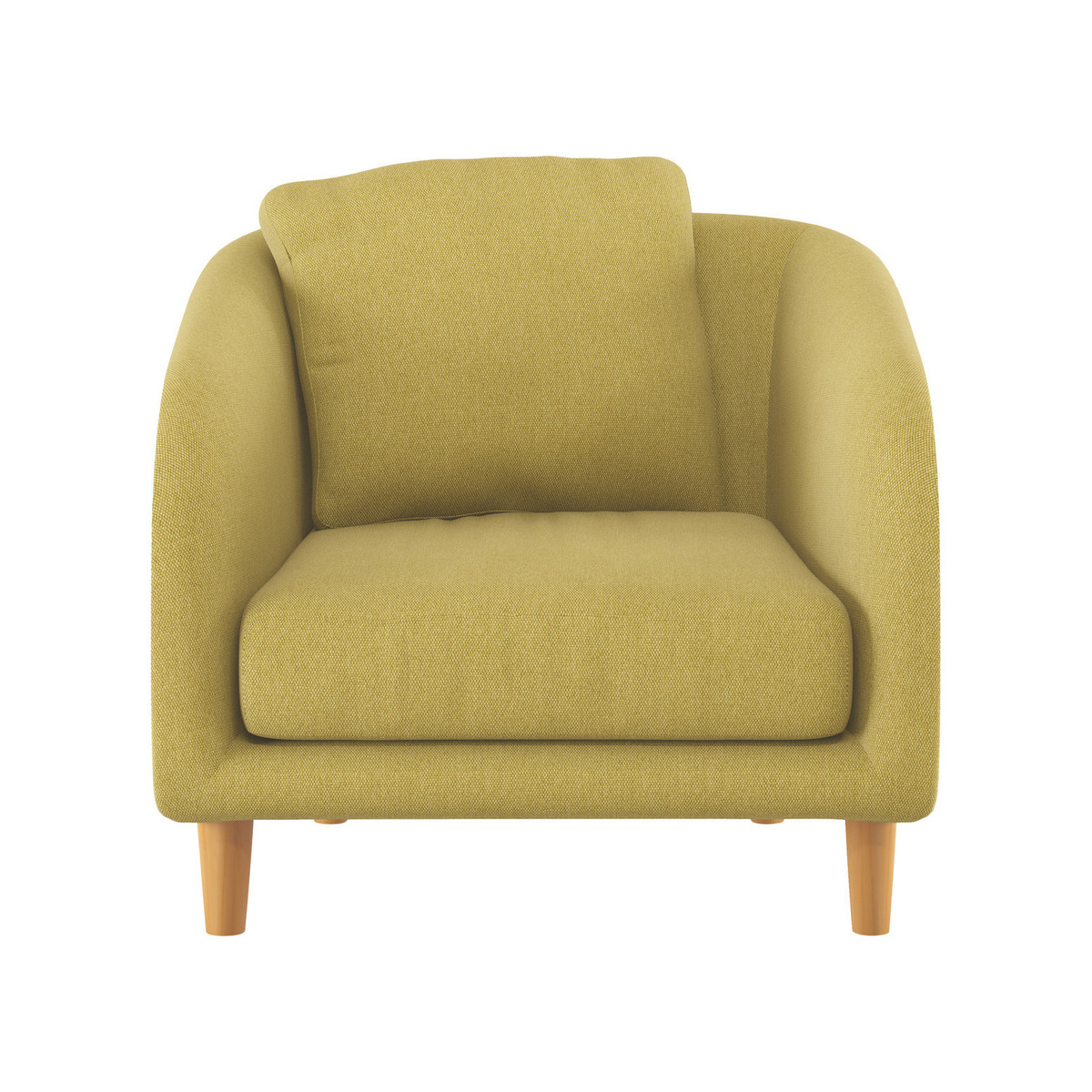 Curvy and feminine, the Colby saffron yellow fabric armchair has a padded, wrap around backrest and a feather-topped seat cushion. A luxurious, feather-filled scatter cushion adds an extra level of comfort to the elegant armchair, which is exclusive to Habitat. The Colby design is available in a variety of configurations and a wide choice of fabrics and colours.