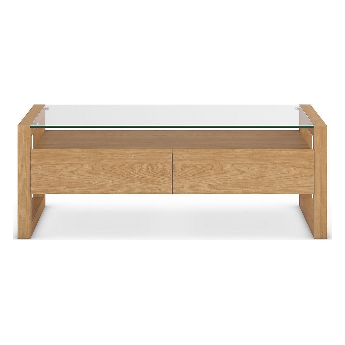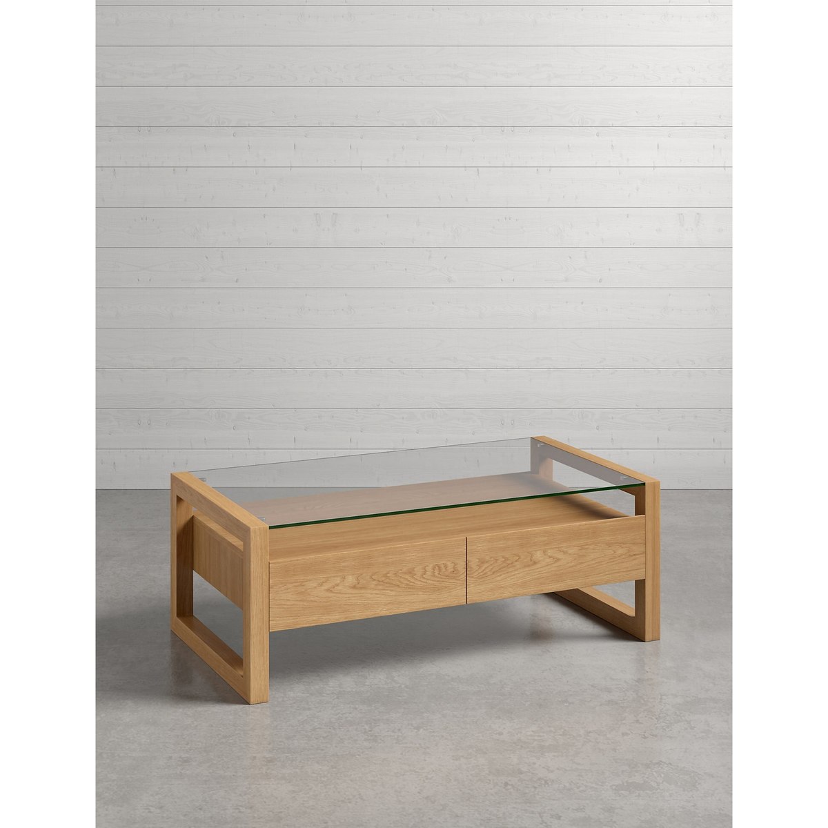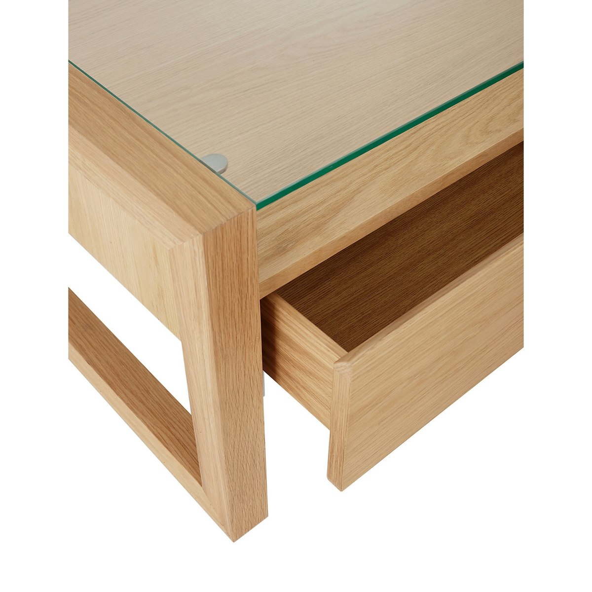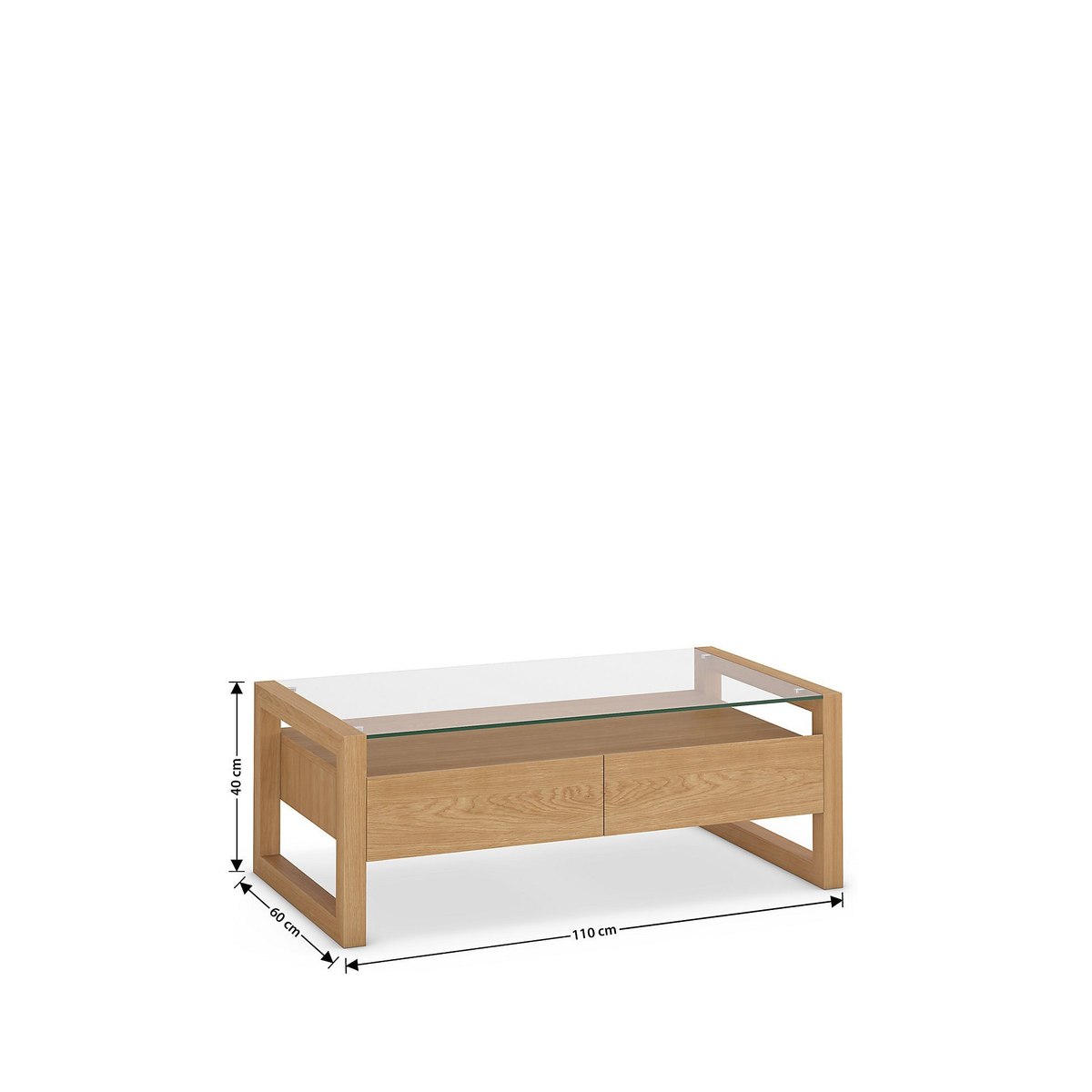 Our Colby glass-top coffee table is not only a practical storage solution but also a stylish way to create a striking focal point in any contemporary room. This sleek coffee table features clean lines thanks to the modern tempered glass table top neatly housed in an angular wooden frame for an on trend modern look. A soft-close drawer offers great storage for remotes and controls, making this table as practical as it is stylish."}