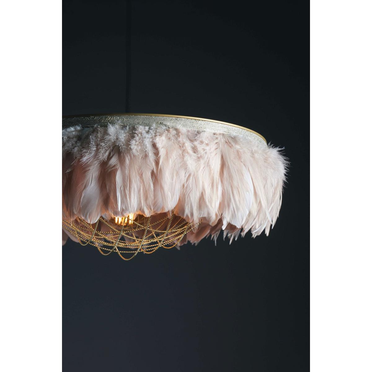 About The Coldharbour Lights Juliette Feather Shade - Blush Pink Bringing a chic colour and texture to your space, the Fabulous Feather Chandelier Featuring Chains in Blush Pink is a wonderfully soft light fitting that screams effortless style. Handmade and designed by Coldharbour Lights this exuberant Feather Pendant Light features elegant, ethically sourced, hand-dyed feathers and beautiful brass ball chains, an ultra-luxurious design that will become the focal point of any room. The Fabulous Feather Light Shade measures 20cm in height with a diameter of 50cm. Why We Think You’ll Love The Blush Pink Feather Lamp Shade This marvellously playful Chandelier Light Shade offers a delightful nod to the opulent art deco era with its plush goose feathers and glorious gold accents. Lighting any room in an exquisite way, this Blush Pink Pendant Chandelier mixes functional use with dazzling design, bringing an oh-so-glamorous look to your space instantly. Where To Style The Vintage Chandelier Light Use this Art Deco Feather Light Shade as a Hallway Pendant Light to inject charm into your home, creating the wow factor from the moment you walk through the door. The Pink Pendant Light Shade will look absolutely show-stopping in your bedroom, exuding a serenely sophisticated vibe whilst adding an element of sass and character to your existing scheme. This fabulous light shades are made to order by Coldharbour Lights, especially for you. As each light shade is bespoke, no two are exactly the same. This means that it may take a bit longer to get to you, but the result will not disappoint!