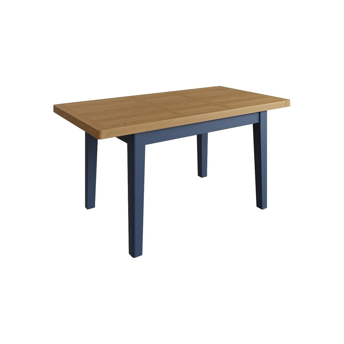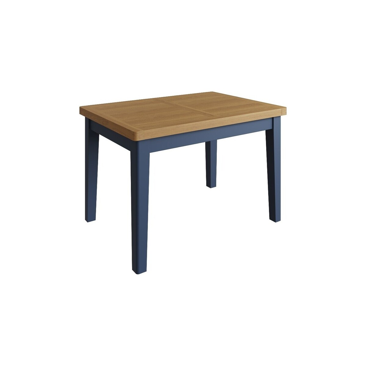 The Cole Oak and Blue 1.2 m Extending Dining Table is stylish and sturdy with a two-toned design. With a durable solid wood frame, the extending table features a blue painted finish on the legs, contrasting with a solid oak table top with a rustic finish. This table has a wide rectangular tabletop, spacious enough to seat up to 4 people and extends to 200cm to seat 6 via a hidden butterfly extension mechanism.;Durable and stylish extending dining table. Assembled using oak, oak veneers, pine and MDF.Stunning two-tone finish. Chunky solid oak top with a rustic oak finish and smooth, rounded edges. Sturdy blue-painted solid wood legs that provide stability and reliable support. Seats 4 people and extends to seat 6. Hidden butterfly extension mechanism that extends it by 40 cm. Aluminium ball bearing runner that allows seamless extending action. Clips to lock in the standard and extended positions.160 cm extending table also available. Fixed top and flip top dining tables also available. Easy and quick assembly.