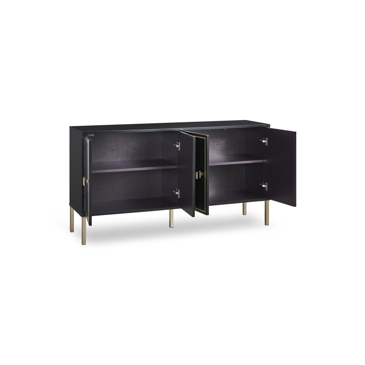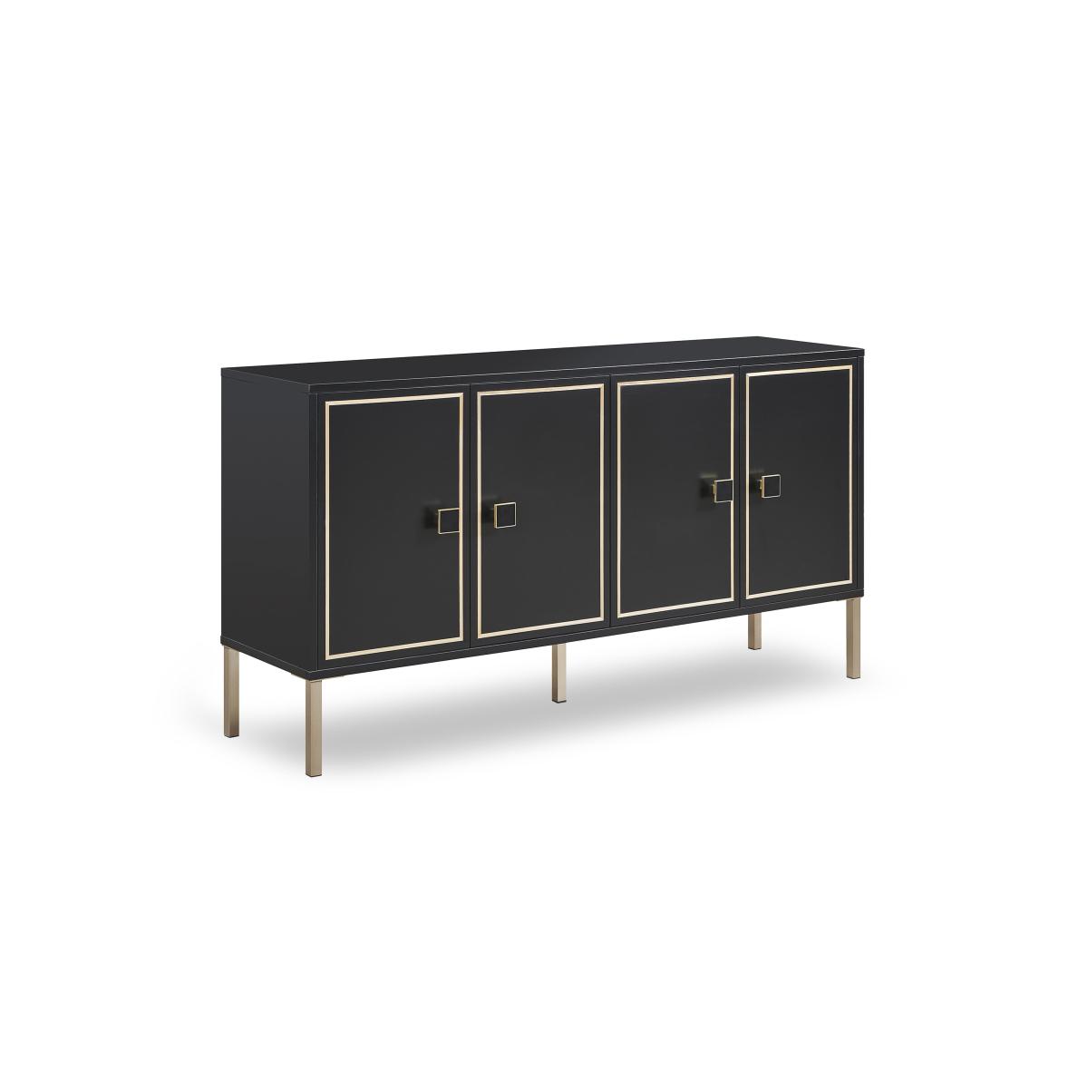 The glam look you love plus the high-tech functionality your modern home deserves – that’s the Cole range of living room storage pieces and occasional tables. Beautifully crafted and with a bespoke-feel finish, these pieces fit seamlessly into any contemporary glam space. Built-in mood lighting is controlled via your smart speaker or an app on your phone so you can adjust the ambience as you relax. The satiny painted finish is available in a choice of colours with coordinating metal legs and decorative inlays. With stunning purple interiors and stylish square door and drawer pulls, the details are just as finely executed as the design. Contemporary and striking in every way, this sideboard showcases modern glam style and has built-in SMART technology. High-end finish in a choice of colours with coordinating metal legs and inlays. Why you'll love it This beautifully crafted sideboard has an entirely bespoke feel. Contemporary glam style meets high-tech functionality. Seamlessly integrated SMART technology. Built-in mood lighting controlled via smart speaker or phone app. Satiny painted finish in a choice of colours. Coordinating metal tone for the decorative inlays and legs. Choose bold black with bronze metal or elegant white with black metal. Interior is beautifully finished in a midnight purple colour. 2 cupboards with soft-close doors. Quick and easy to assemble with patented click-together system. Complete the look with the matching TV unit and occasional tables. This sideboard is part of the Cole range. What you need to know Simple self-assembly is required for this item. 2 double-door cupboards, each with 1 adjustable shelf. Do not use abrasive cleaning products. Wipe clean with a damp cloth, and dry with a soft duster. We recommend using coasters and placemats at all times. WARNING! Item code: CLE-SB--BLK-001