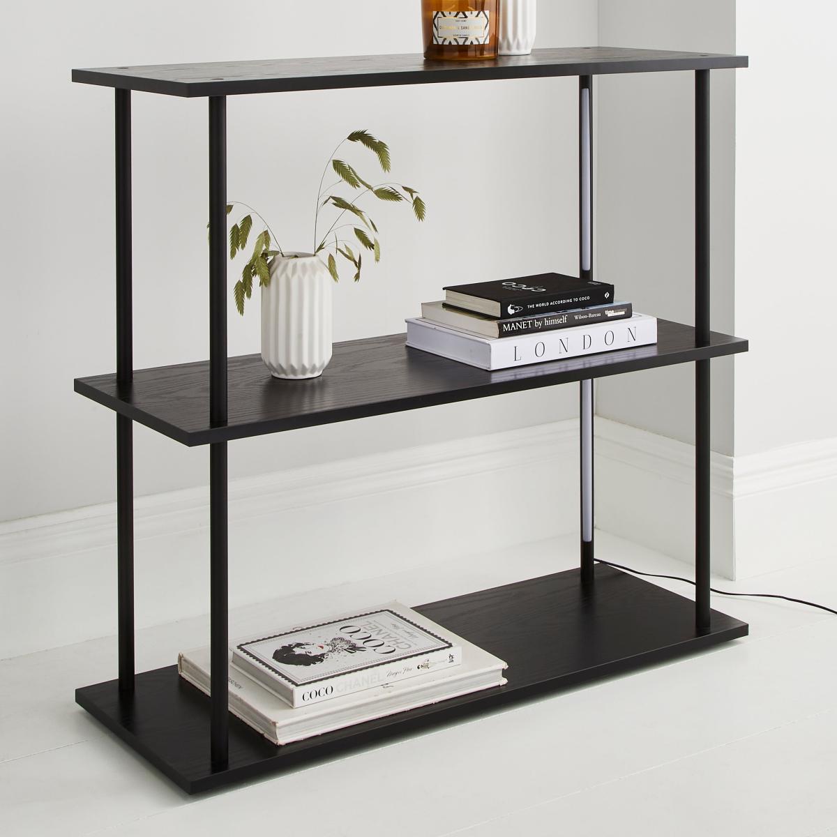 Do you have little space for multiple items? Then here's a great space saving solution perfect for your home. Our fabulous Cole Console Table acts as both a modern storage and decorative shelf and a lamp, giving you a 2-in-1 lighting and storage option. It features two replaceable and integrated LED lights to set that subtle ambience and can easily be switched on and off with a gentle press of your foot. This console table and LED is finished in a modern and sleek black foil colourway to match any home decor. *LED Lighting - environmentally friendly and energy efficient, using up to 90% less energy than incandescent bulbs and they also have a life expectancy of up to 50 times longer than traditional bulbs and produce less heat.