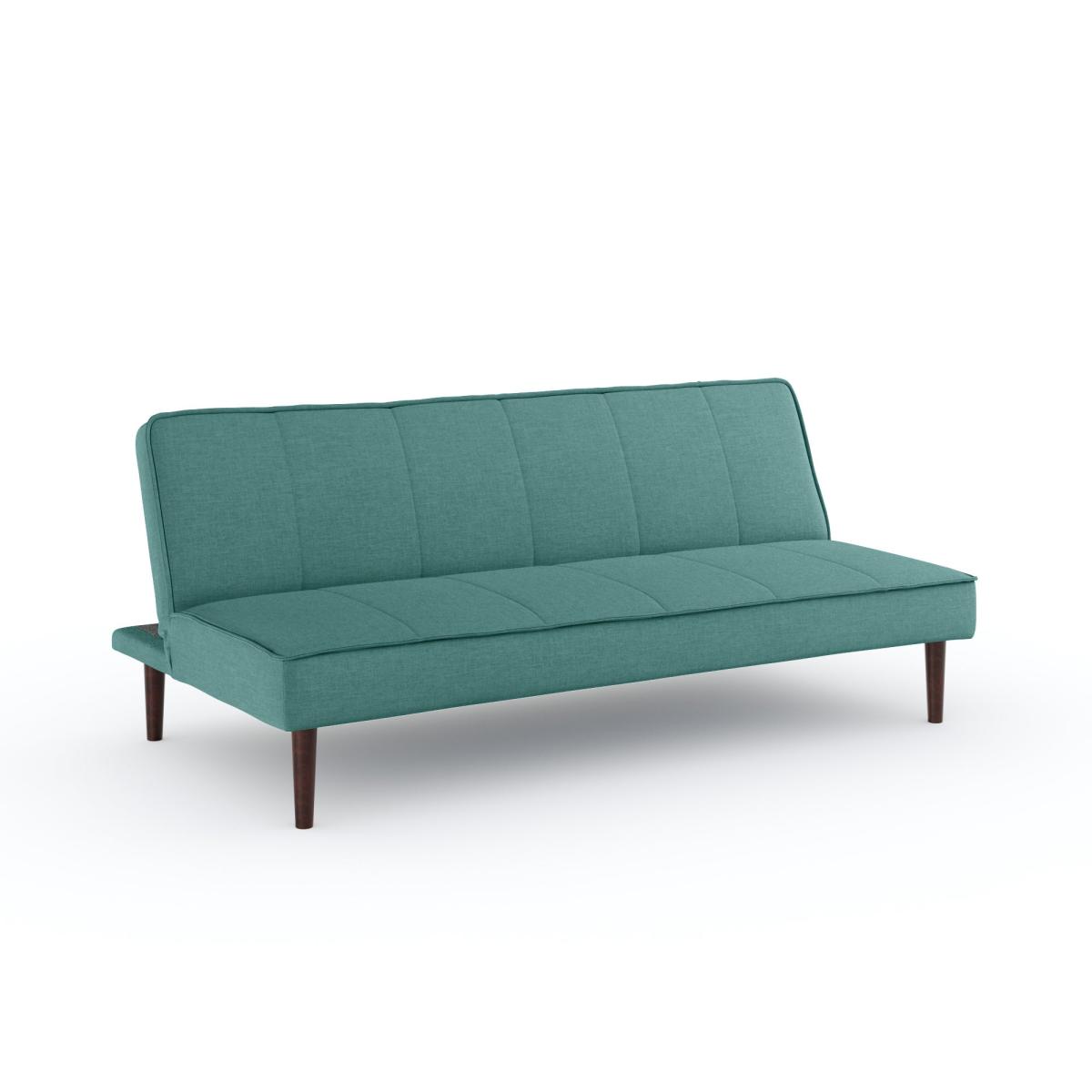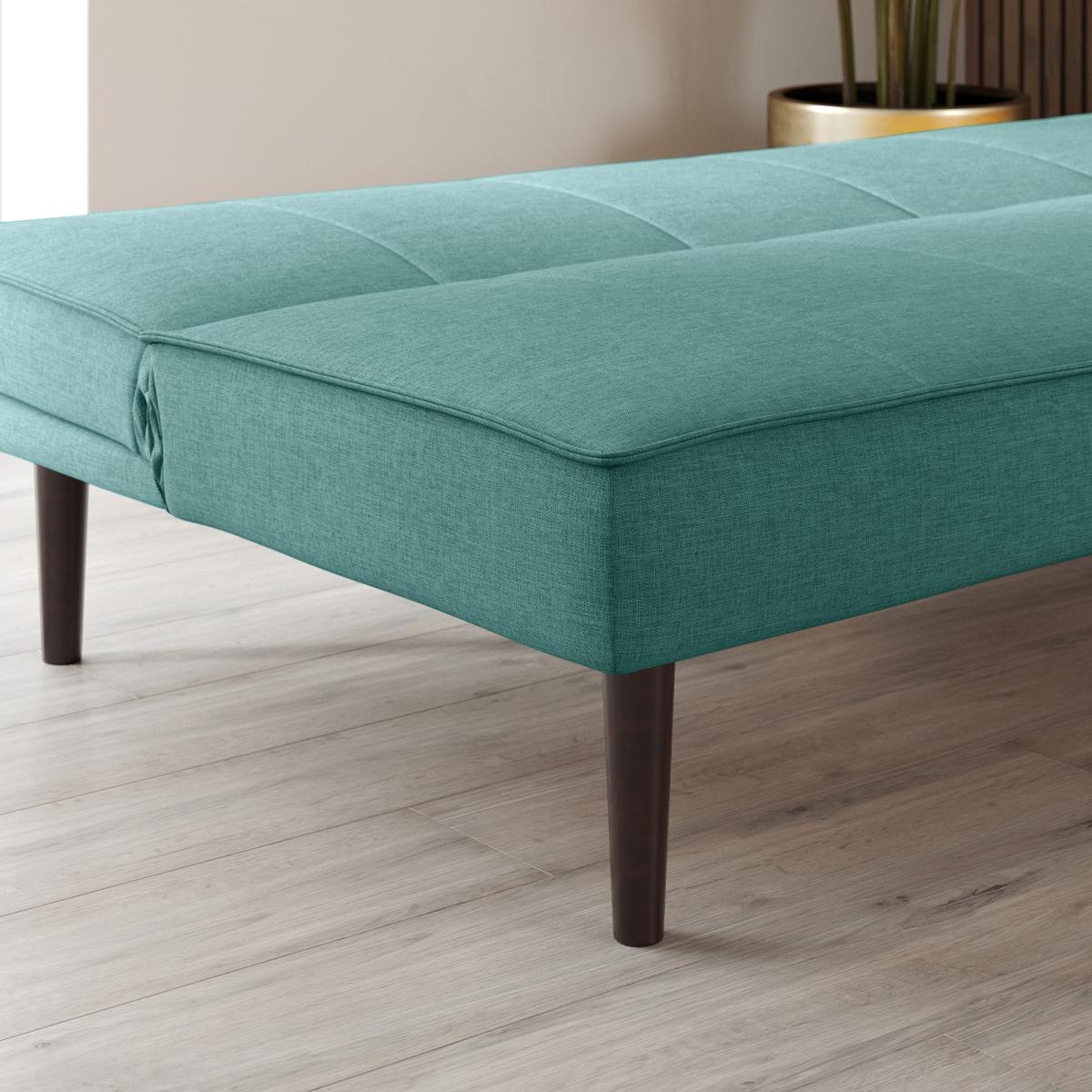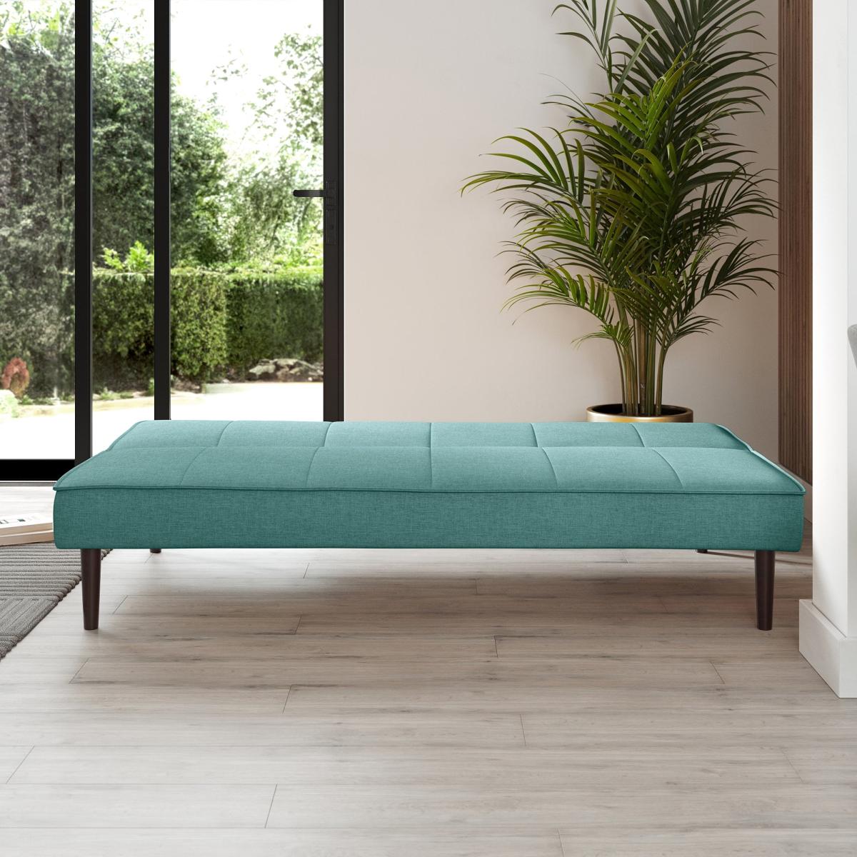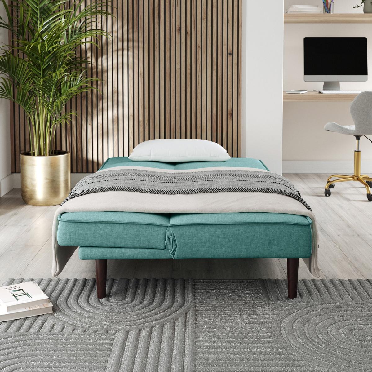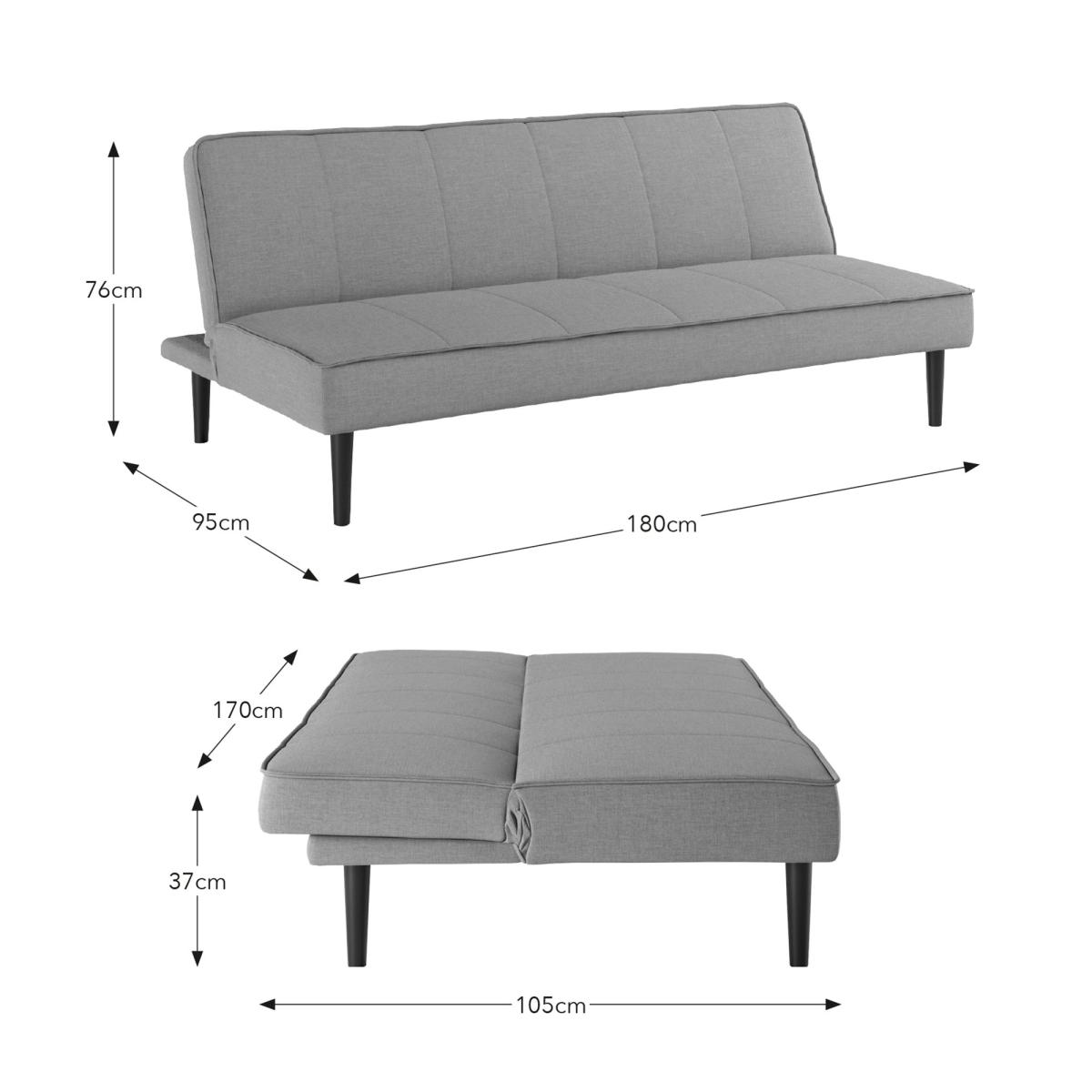 This click-clack sofa bed features a simple yet captivating style that effortlessly complements any interior decor. Crafted with the finest linen fabric, it offers a soft and inviting touch that adds a touch of sophistication to your living space. Designed as a spacious 3-seater sofa, it cleverly transforms into a comfortable single bed, making it the perfect solution for accommodating guests or creating a cozy retreat for yourself. Sink into the sumptuousness of its foam-filled cushions, providing unparalleled comfort and support. Complete with dark wood legs, this linen sofa bed embodies a harmonious balance of aesthetics and practicality.