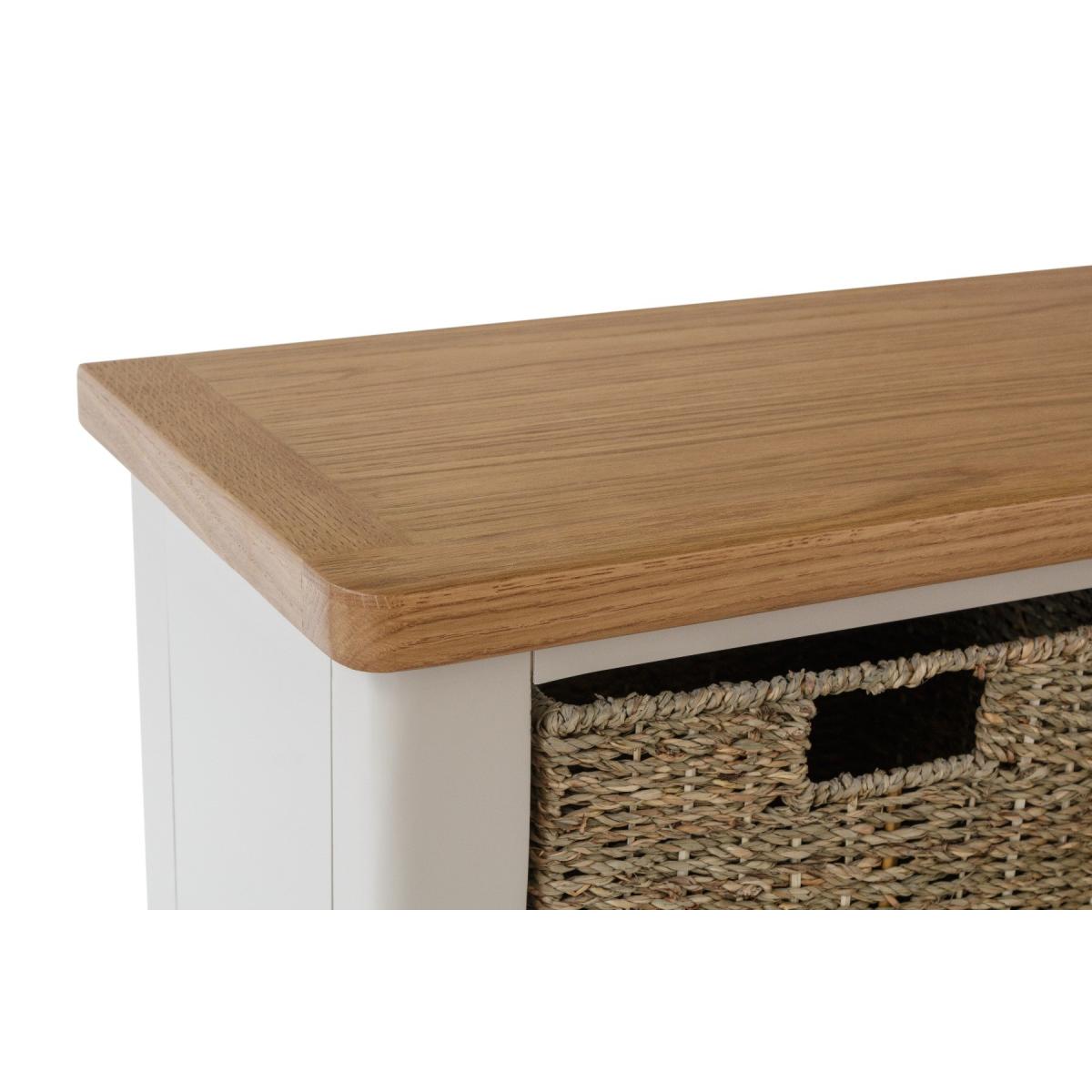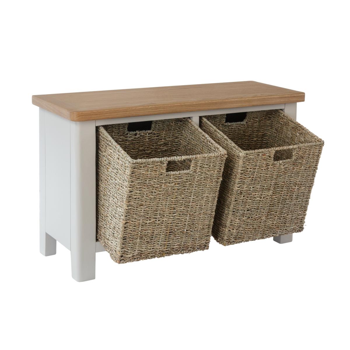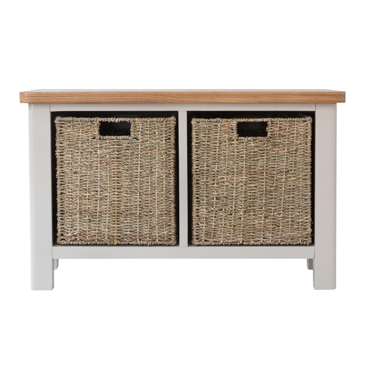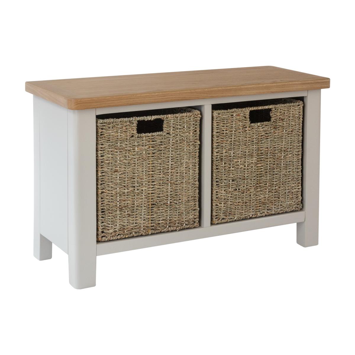 The Cole Oak and Truffle Grey hall bench has a stylish and tasteful design and will be a unique and elegant addition to your home. This hall bench has a classic two-toned finish that gives it a sophisticated look and adds to the existing decor in any room. It was designed with quality, longevity and performance in mind and will provide exceptional value for your money. Stylish and unique accent furniture for your hallway. Has a strong, solid wood frame with truffle grey/greige painted finish. Comes with 2 wicker baskets to cater to your storage needs. Short, sturdy solid wood legs that offer maximum stability and support. The seat height is 50 cm. Dense, solid wood bench-top with a radiant light oak finish and smooth rounded corners. Comes ready assembled. Look out for more items from this range of furniture.