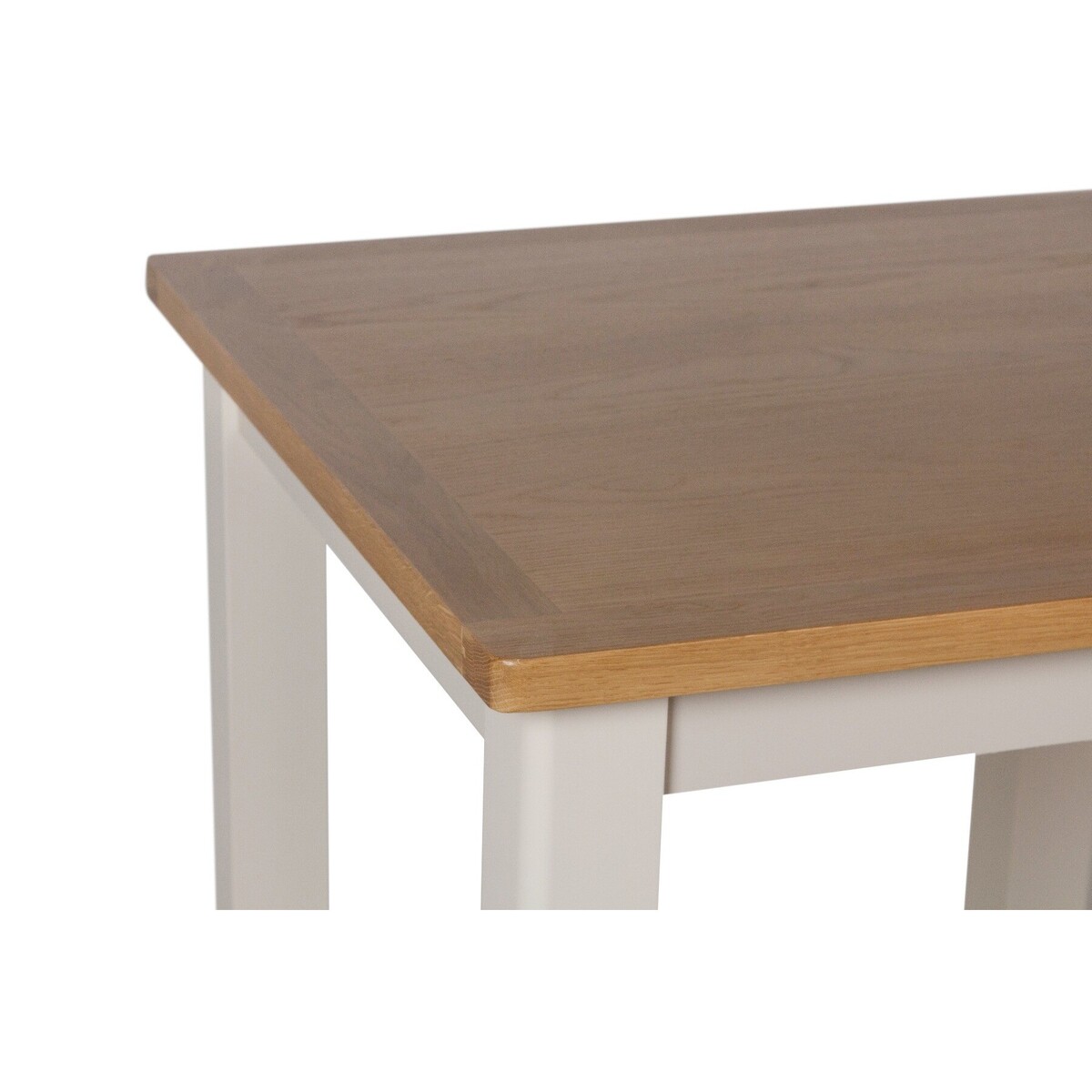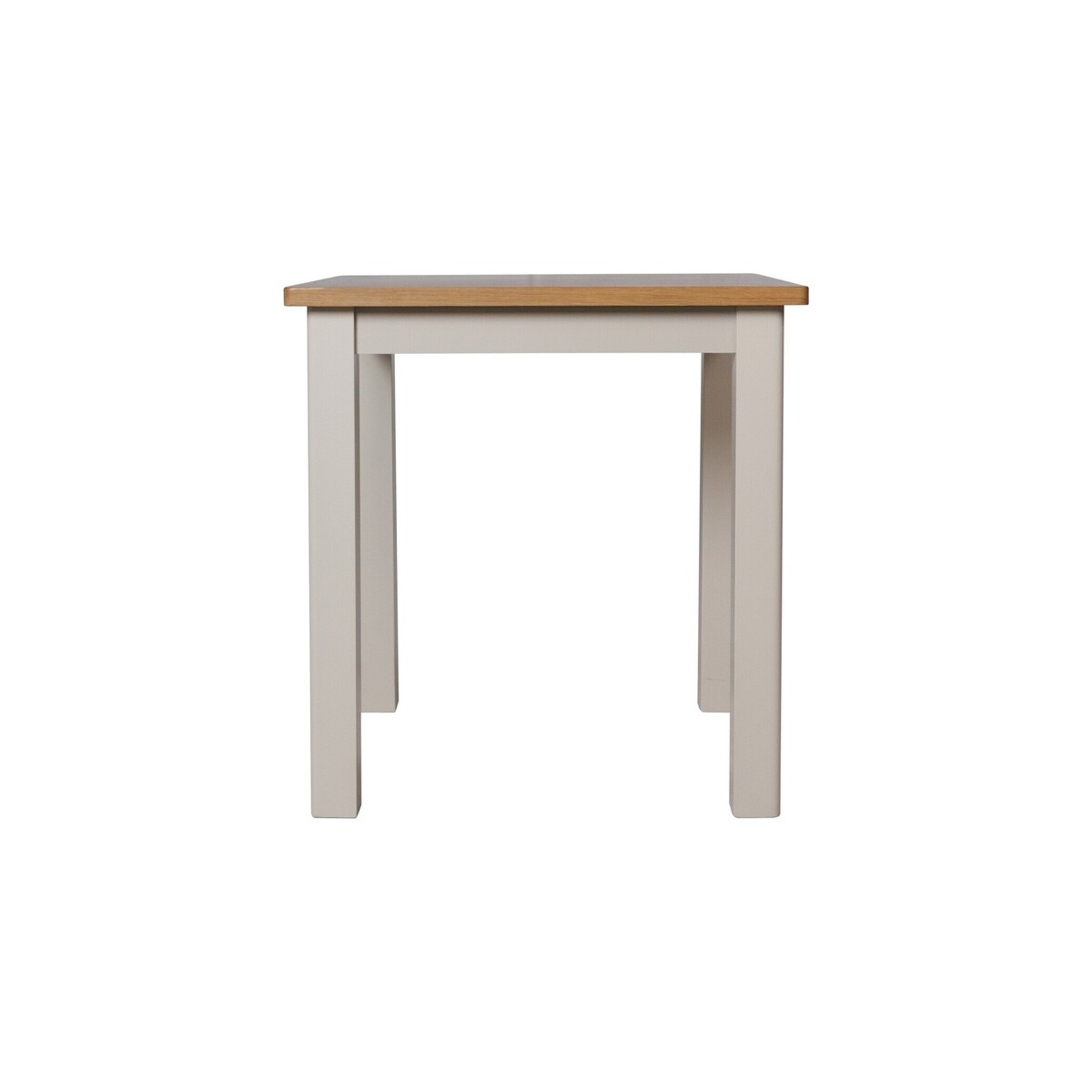 The Cole Oak and Truffle Grey Square Dining Table is a small dining table ideal for compact dining areas. Stylish and durable, the space-saving dining table seats 4 people features sturdy solid legs with a truffle grey painted finish contrasting with a thick oak table top with rounded corners for a classic look. Space saving square dining table. Perfect for small areas – seats up to 4 people. Durable construction with sturdy truffle grey/greige painted legs and oak top Quick and easy assembly. Complements other items in the Cole Oak and Truffle Grey Collection.