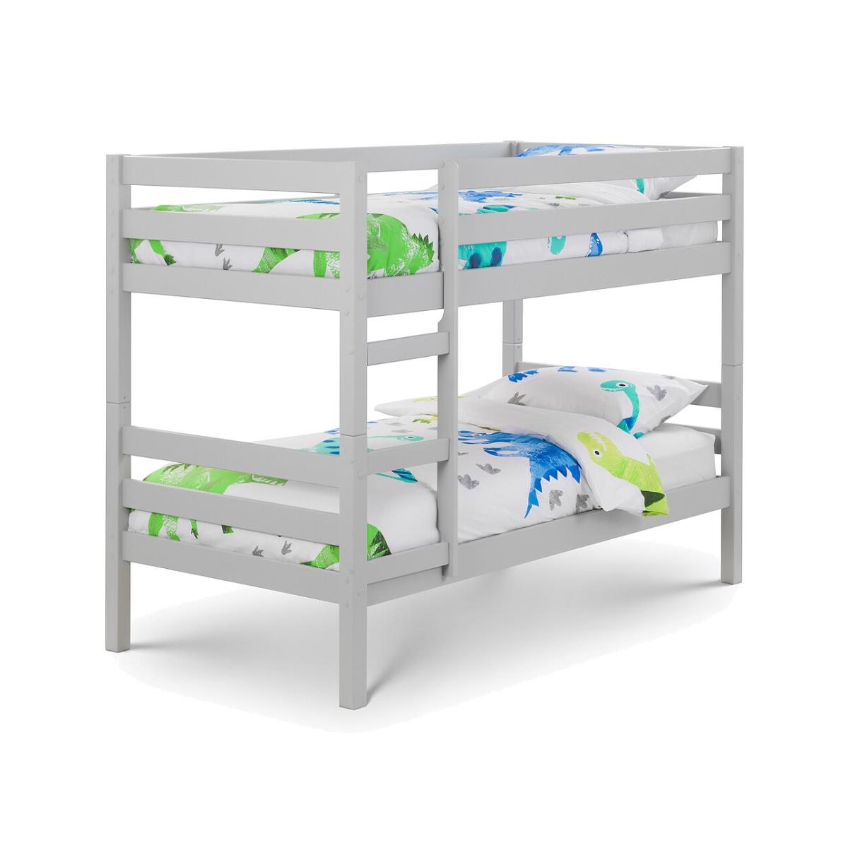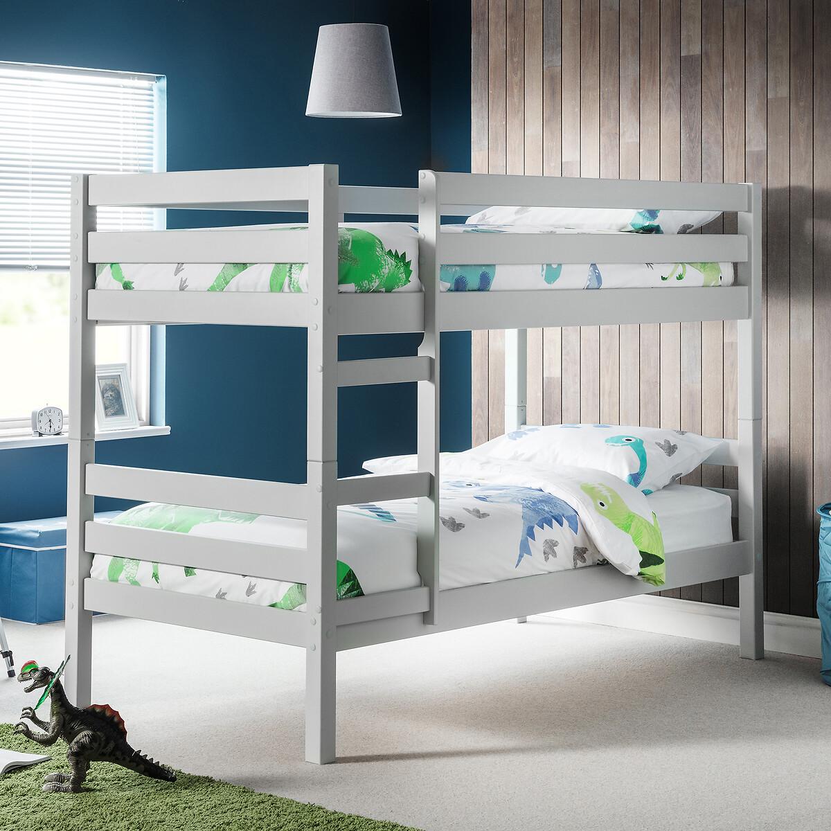 The Cole Bunk Bed boasts a robust construction from solid pine. Its clean lines and timeless design offer a winning combination of style and durability - great value for money. Product details• Solid Pine construction• Solid wood slatted guard rails• Open sides on lower bunk• Conforms to BS EN 747:2012• Accepts 2 Standard UK Single Mattresses (90cm x 190cm)• Assembly required• Fixings included• Max weight capacity - 12 stone• Compatible with Standard UK single 90 x 190 cm• Mattress not included• Maximum mattress height - 22cm. To minimise the danger of falling from the top bunk, we recommend that the top of the mattress should always be at least 16cm below the top of the lowest part of the guardrail. • 12 month product guarantee. Composition - 100% Solid Pine Overall Dimensions 203 cm x 105 cm x 150 cm , Weight - 56 KGBottom of side rail to floor - 26.5 cm Distance from floor to top of ladder - 118 cm Package Dimensions: Parcel 1 Packaged Dimensions - 89 cm x 29 cm x 21.5 cm, Weight 215 KGParcel 2 Packaged Dimensions - 191.5 cm x 31.5 cm x 14.5 cm, Weight 37 KGPlease note: this product cannot be be delivered to all Offshore Islands Northern Ireland or Republic of Ireland. This product will be dispatched by one of our trusted suppliers. You’ll be contacted by their selected courier about your delivery.