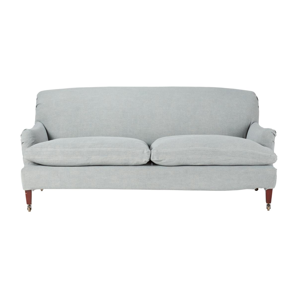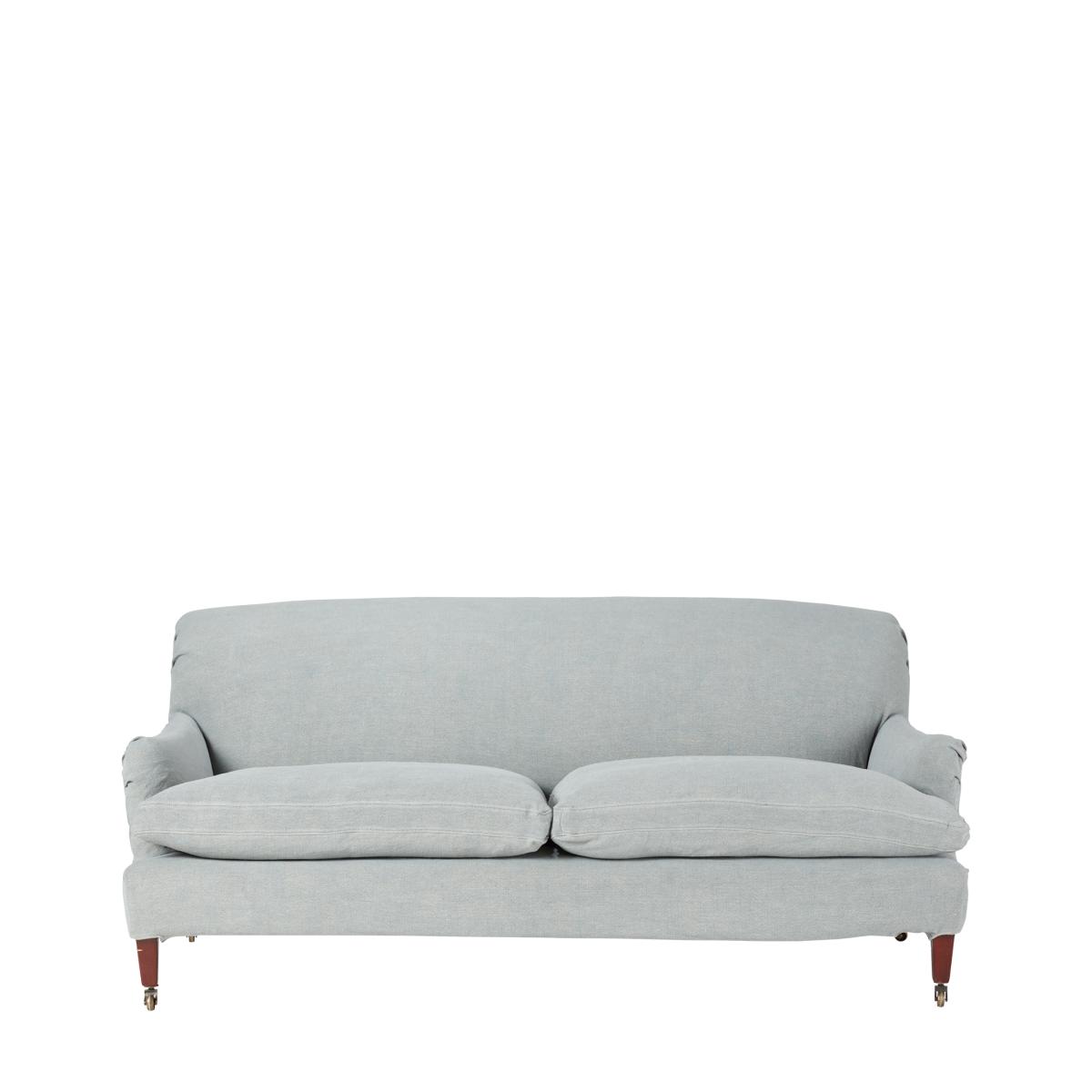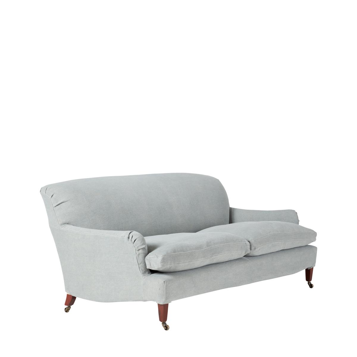 Comfort is important to us, and it is delivered in abundance in this deep, comfortable three-seater sofa, which is inspired by traditional 20th-century English designs. As well as its rounded arms, uniform skirting detail and stained birch wood legs the sofa is built with a sprung back and a deep seat, which is crafted using traditional coil springs that are held together with webbing. A layer of foam, topped off with a deep, channelled duck feather-filled seat cushion, ensures optimum comfort. The finishing touch: removable fitted covers that make this piece as practical as it is stylish.