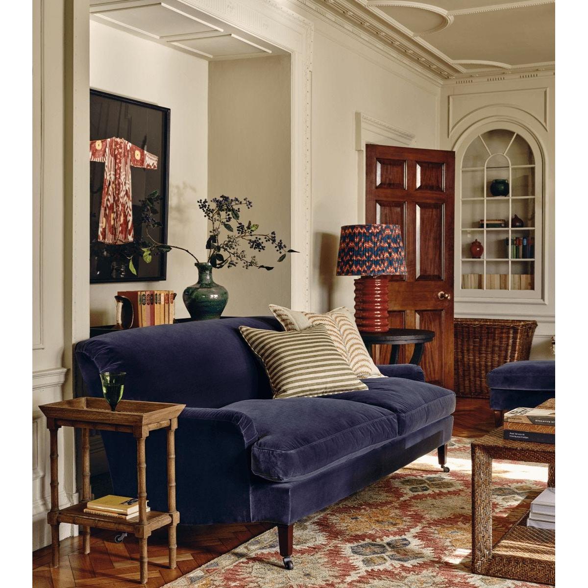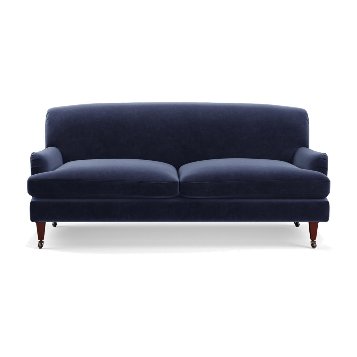 Inspired by traditional English designs, the Coleridge is a piece that will stand the test of time. When OKA was founded, it was with a desire to design pieces full of beauty, practicality and comfort, and this deep-set sofa is the epitome of that; rounded arms, uniform skirting detail and stained birch wood legs create an elegant aesthetic. The legs are removable and will be attached upon delivery. With luxurious Sapphire blue velvet upholstery, there is no better place to relax.