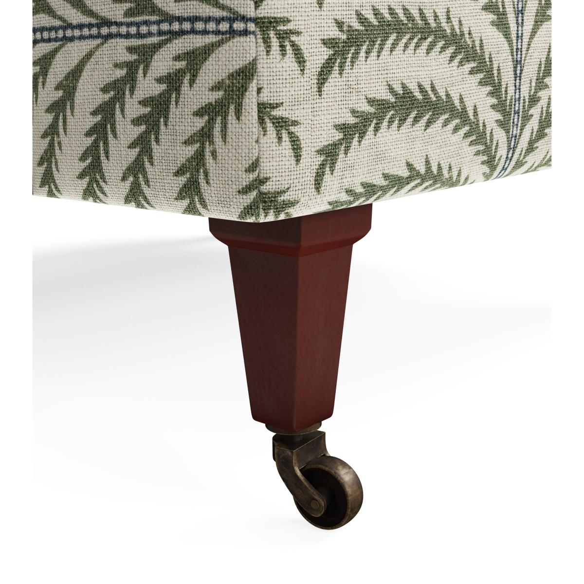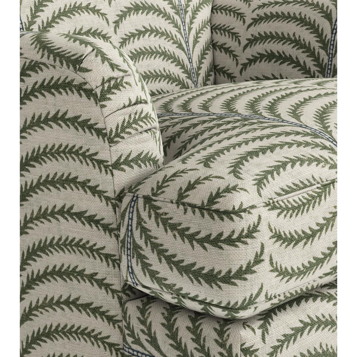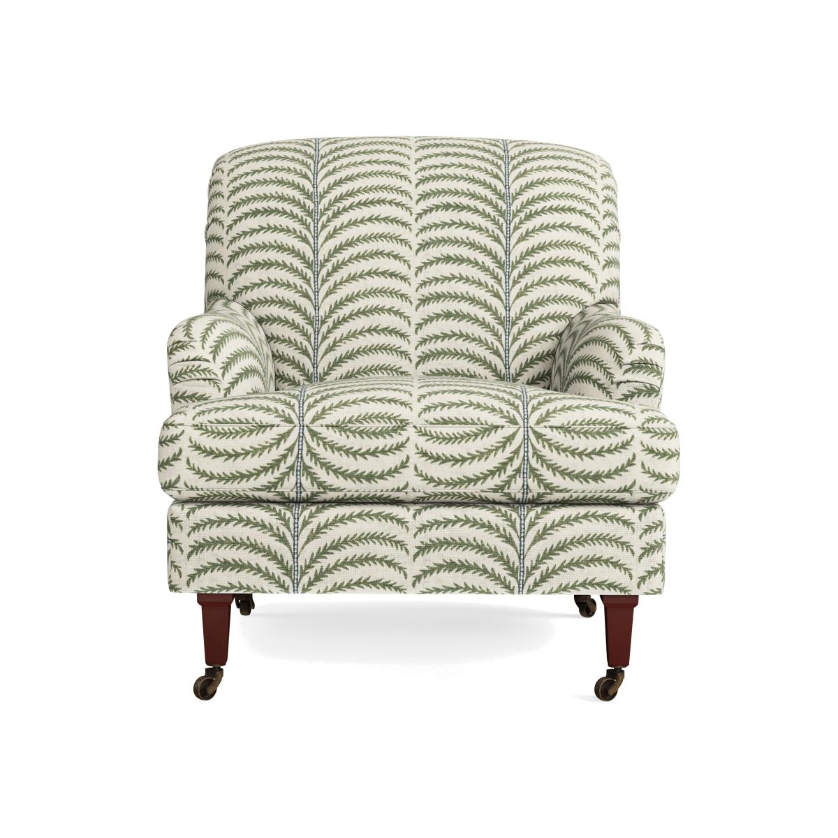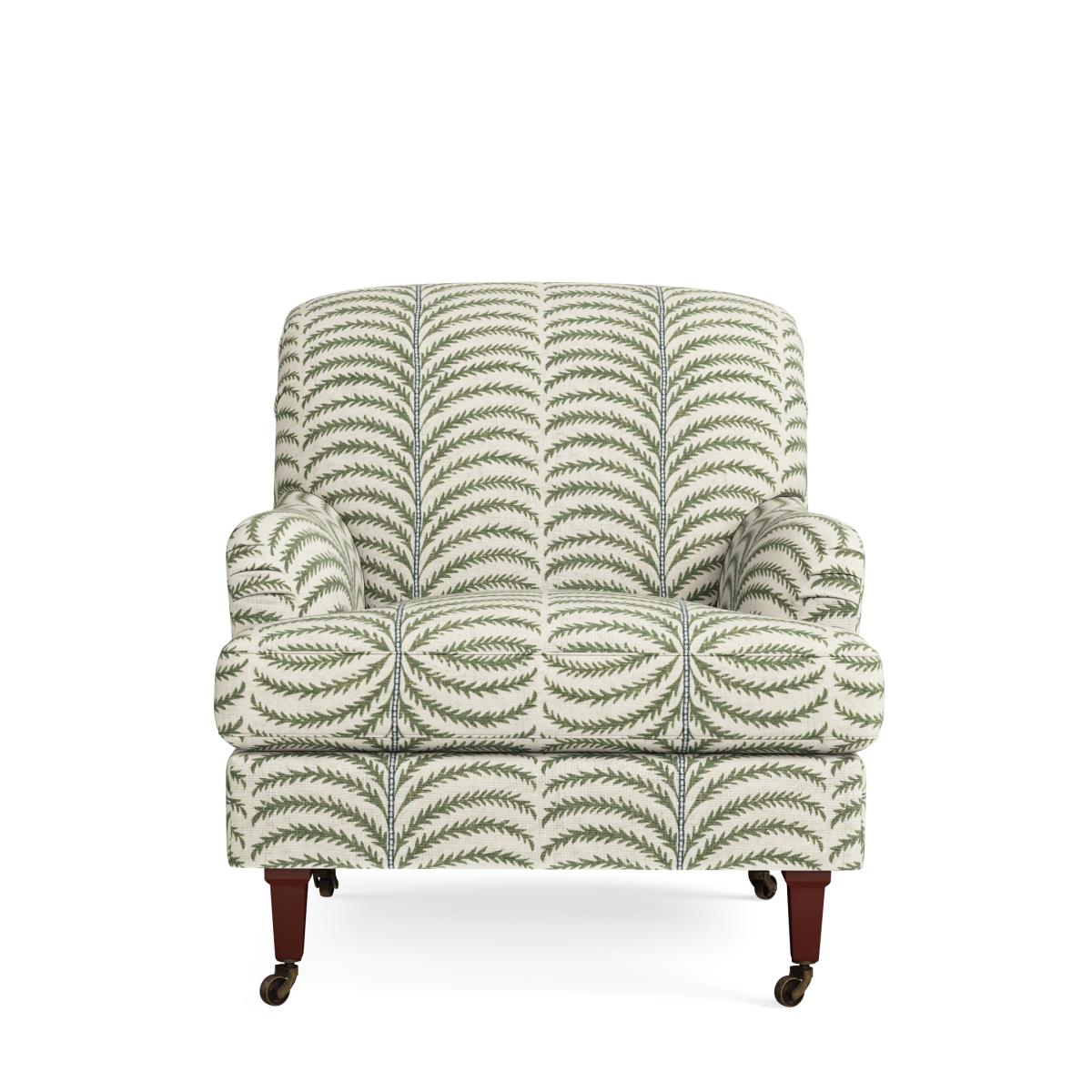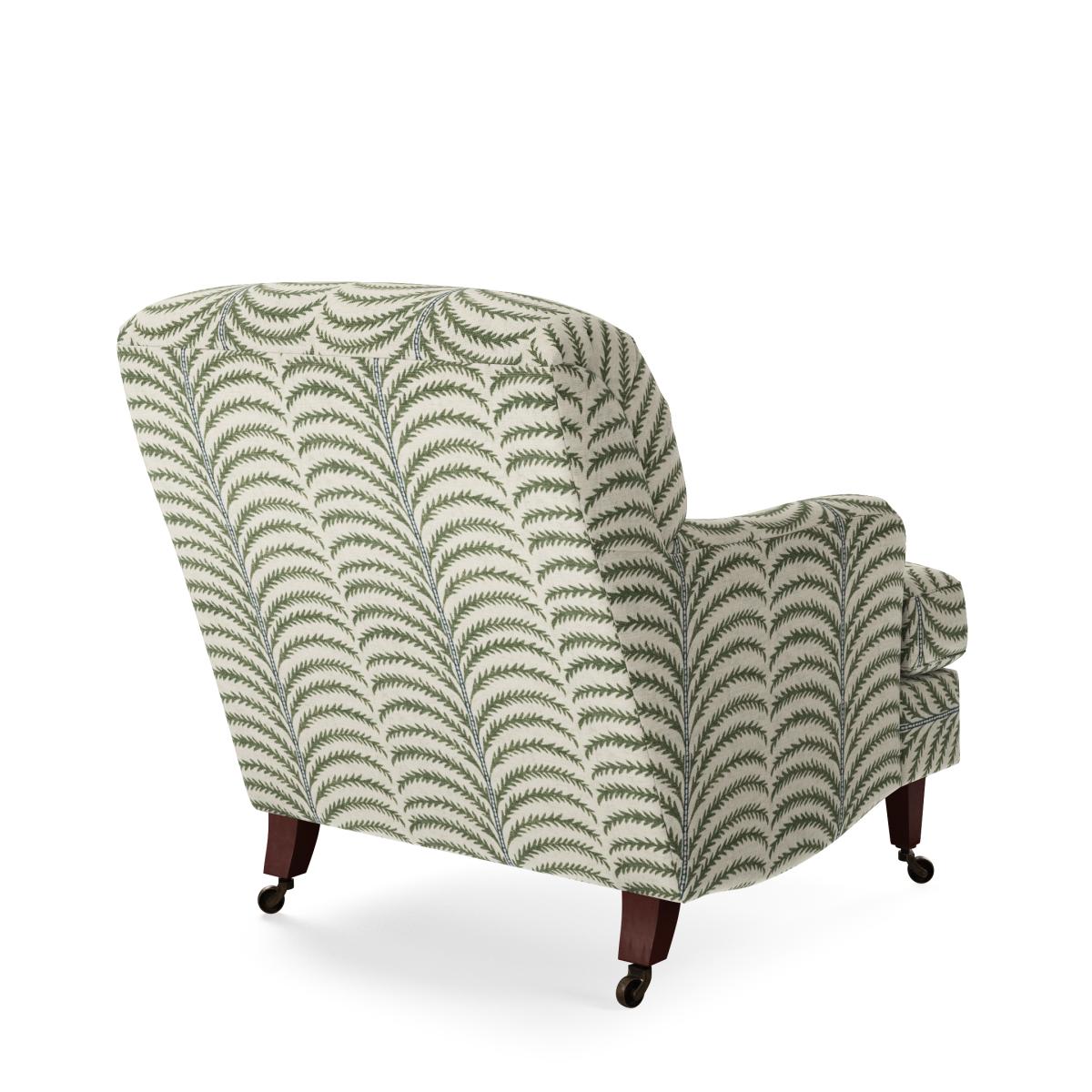 Our Coleridge Armchairs have an early 20th century-style traditional English design, with rounded arms and four antique-style brass-coloured castors on stained birch wood legs which are removable and will be attached upon delivery. Comfort is very important to us, and it is delivered in abundance via the sprung back and the seat, which features traditional coil springs. We’ve added to the range by updating it with our much-loved Areca print which branches up the back of the chair as if the fronds are growing up and over the arms.