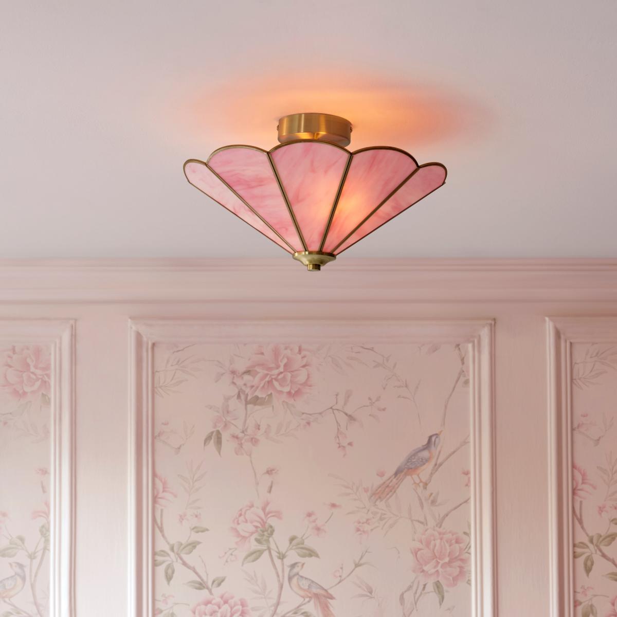 I love this ceiling light for its elegant Mid Century design and soft, ambient glow. It works especially well in vintage-inspired or eclectic interiors, adding a touch of colour and sculptural interest without overpowering the space. Practical styling tips include pairing it with neutral or pastel colour schemes to accentuate its pink tones, and placing it in rooms where a statement but unobtrusive light source is desirable - like hallways, bedrooms, or living areas. For a cohesive look, consider coordinating with other vintage or Art Deco elements, and keep the surrounding decor simple to let the fixture shine.