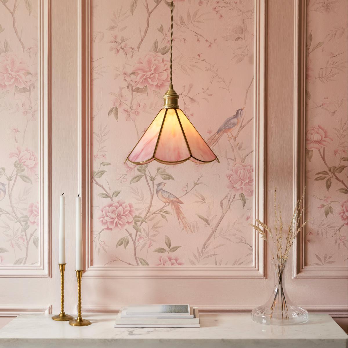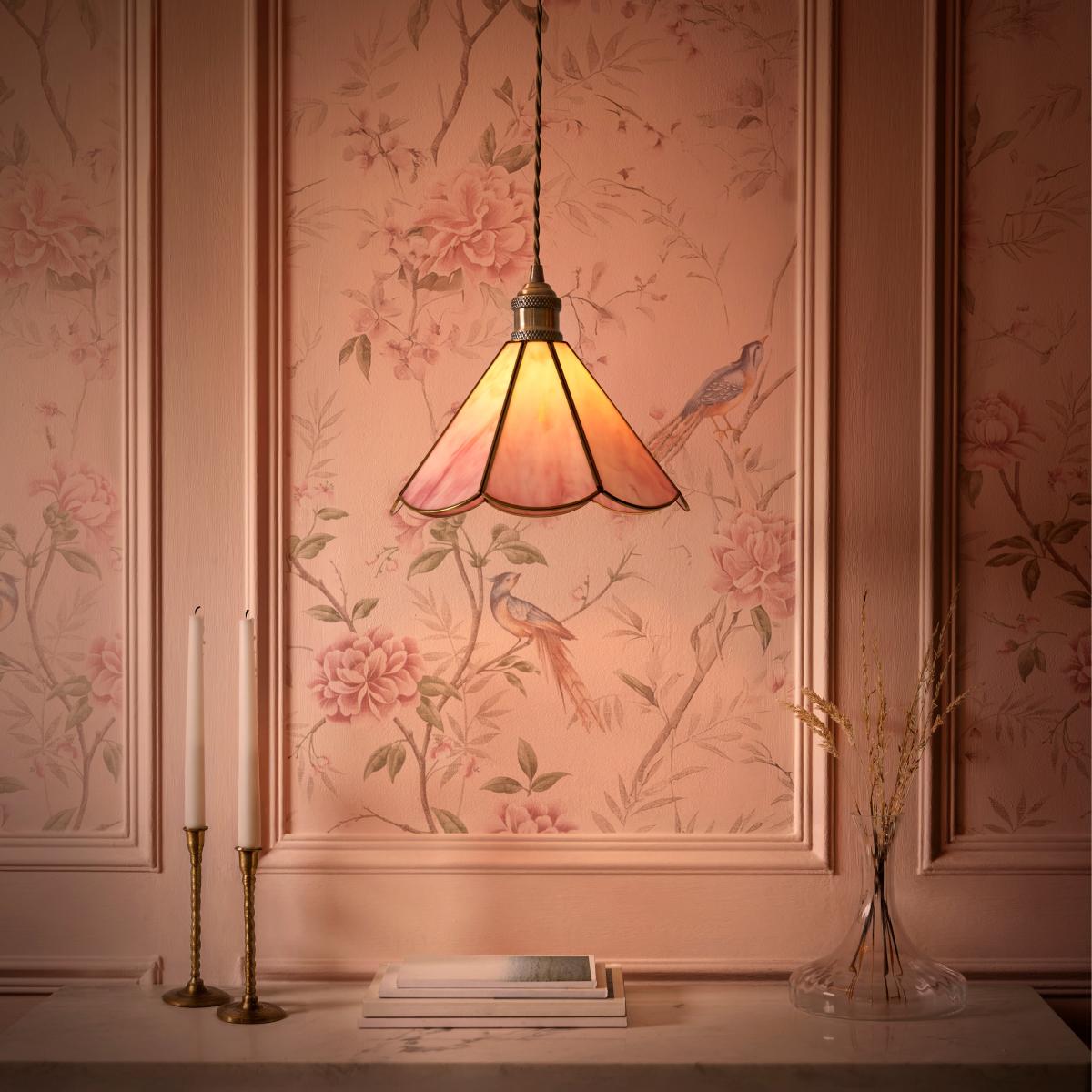 * Stunning Design* Tiffany-Style Scalloped Shade* Made from Steel & Glass* Adjustable Height - Tailored Ambience* Dimmable Compatible - Needs Dimmable Bulb & Switch* Requires: E27 Cap Type & Standard (GLS) Bulb Both elegant and beautiful in design, the Colette Mid Century Adjustable Ceiling Light is guaranteed to make a statement in your living space. It features a tiffany-style scalloped shade, with brass-framed marbled panel glass.