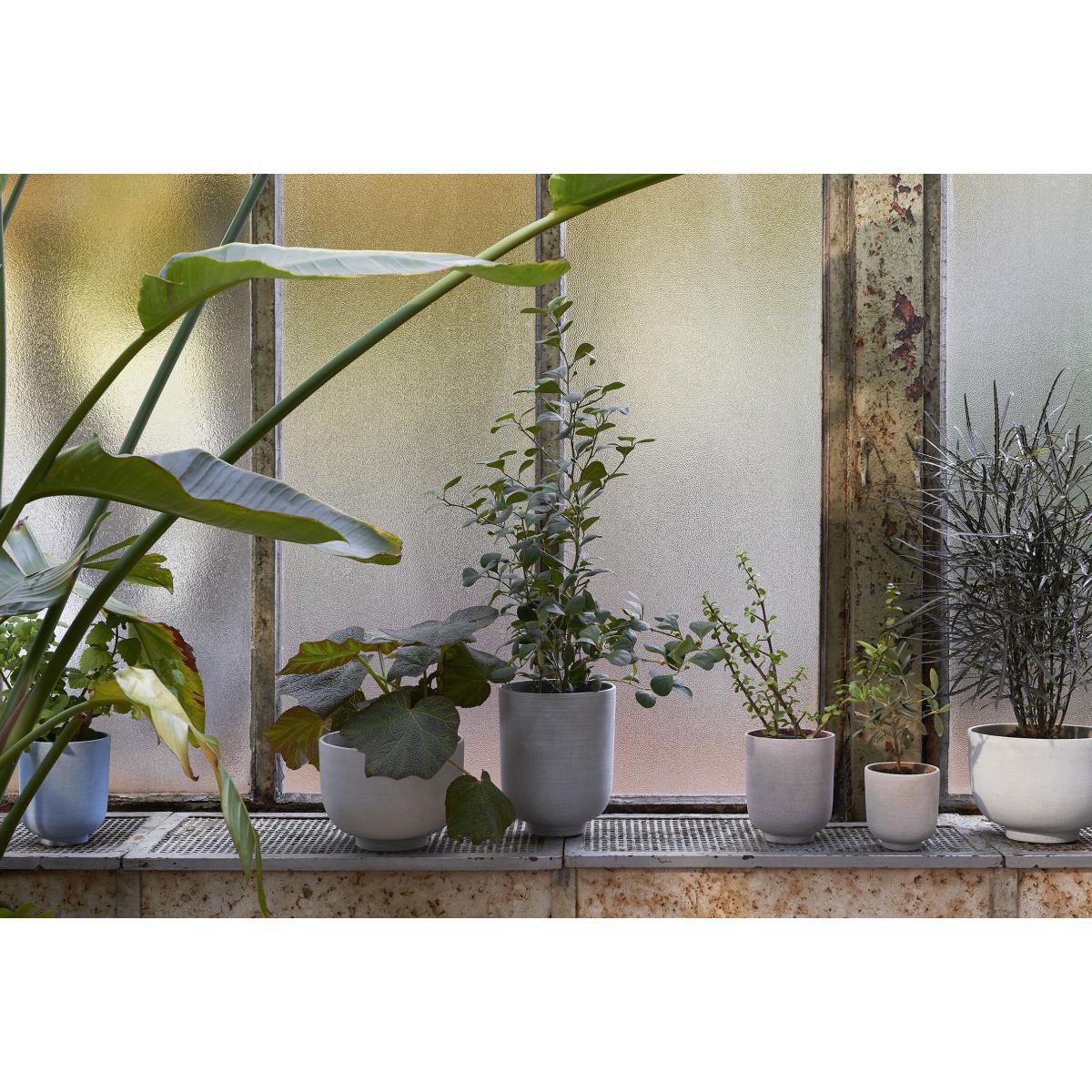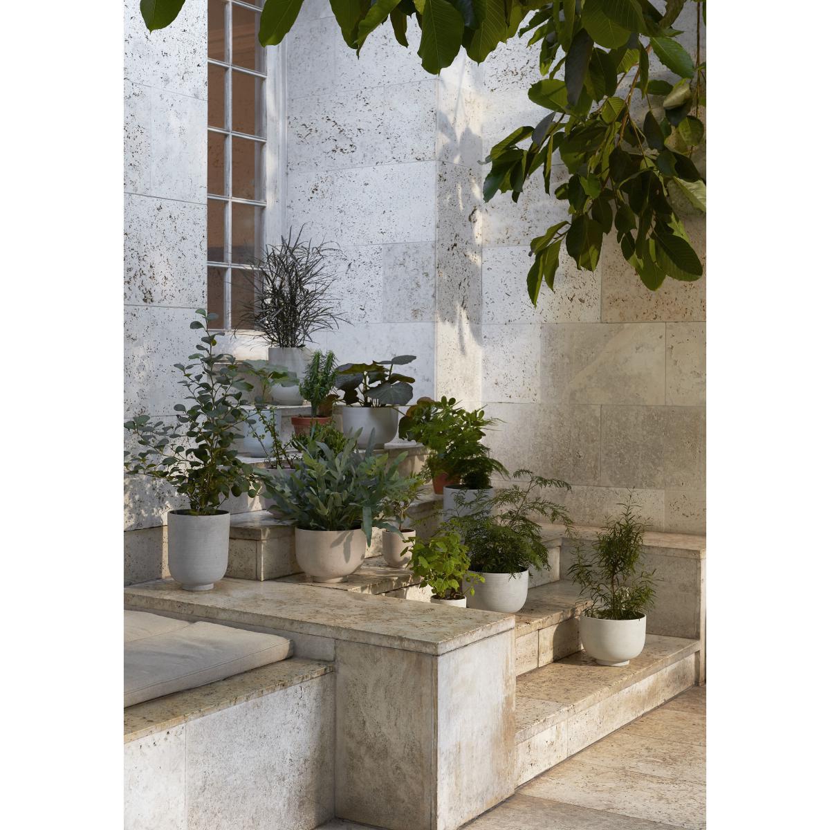 Mineral beauty… A sober, minimalist style for these polystone flowerpots. This composite material (a mixture of stone powder and resin) has the appearance of stone while being very light. The inside of the pot has a waterproof coating for additional protection. The slightly raised base is a call back to the sculptural curves of a pedestal. These flowerpots can be used outside but not during the winter months, when there is frost.