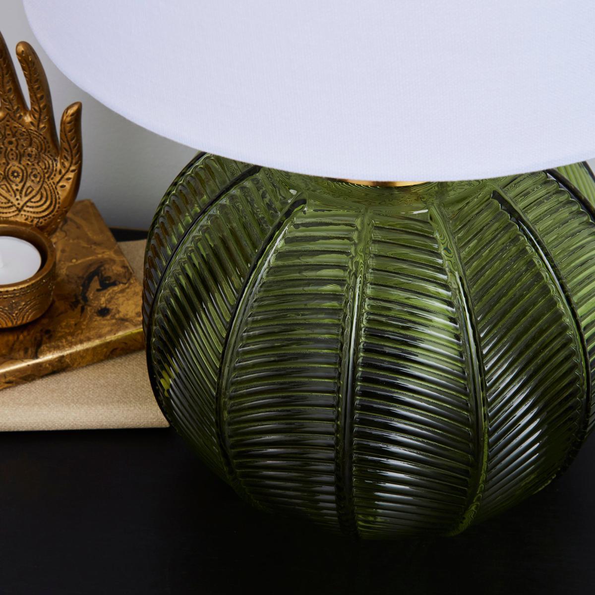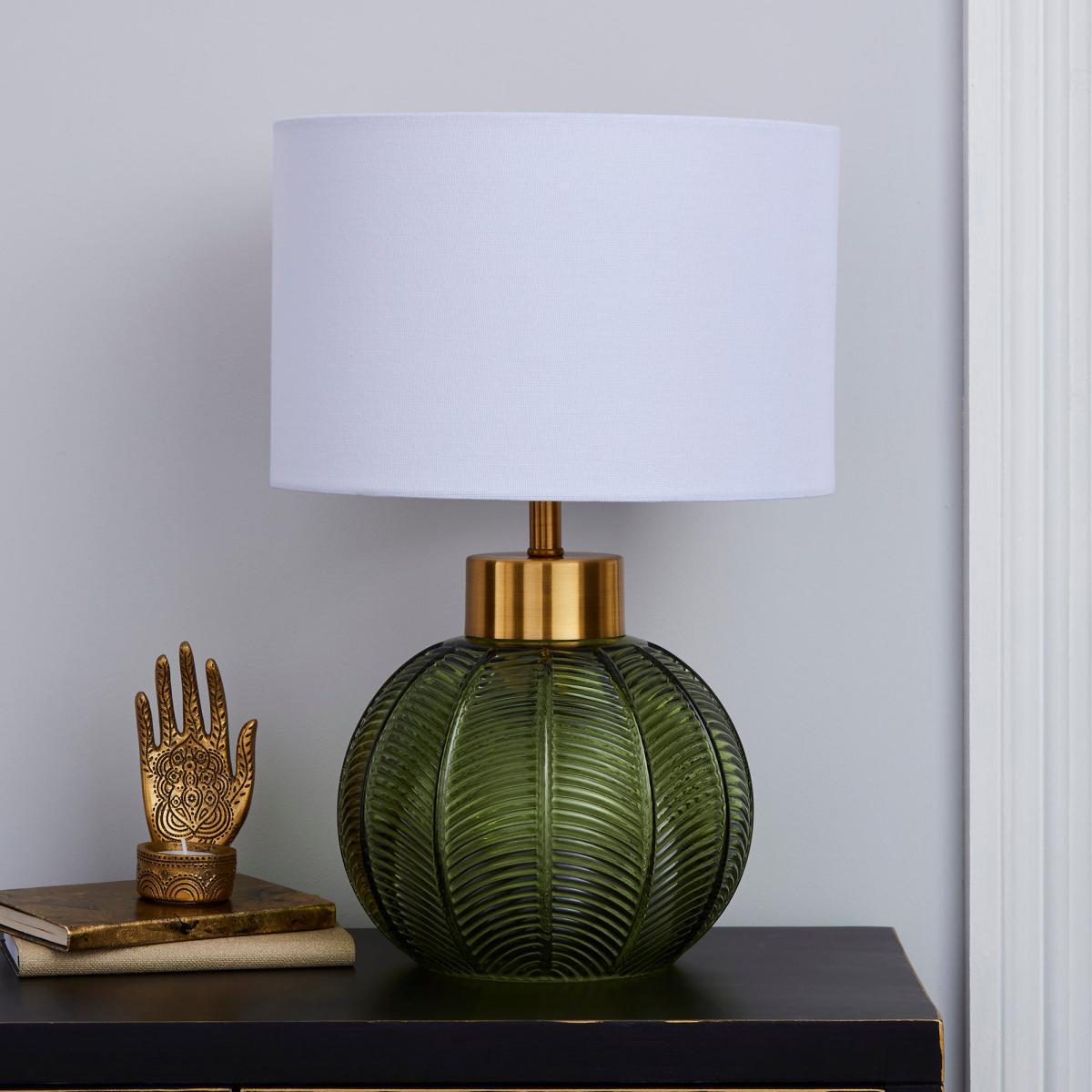 Add a botanical style to your home with this beautiful Colleen Glass Table Lamp. In a stylish Bottle Green and Pink colour, made from blown glass and antique brass metal, this lamp will be a statement piece in your home. Matching family items available to help coordinate your room.