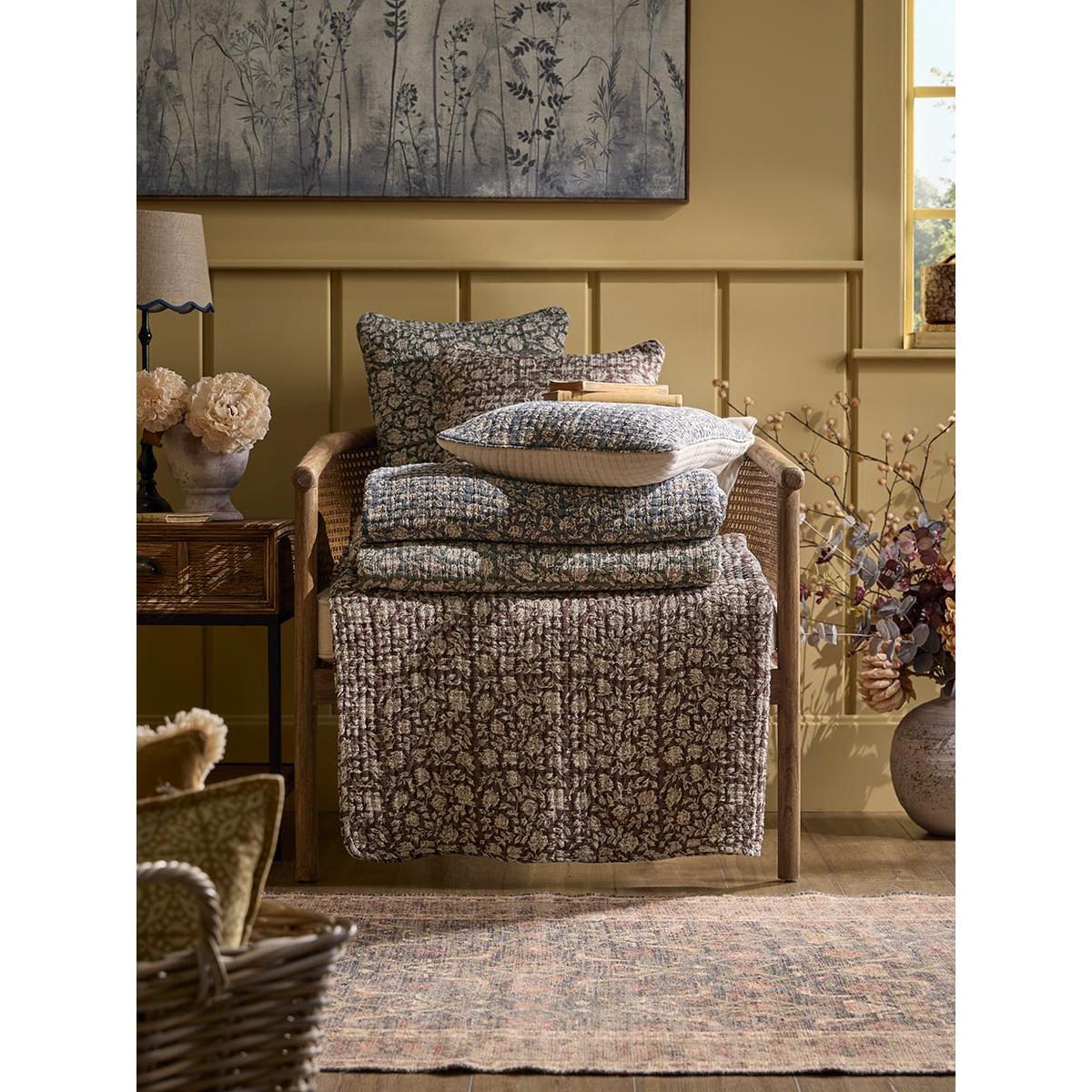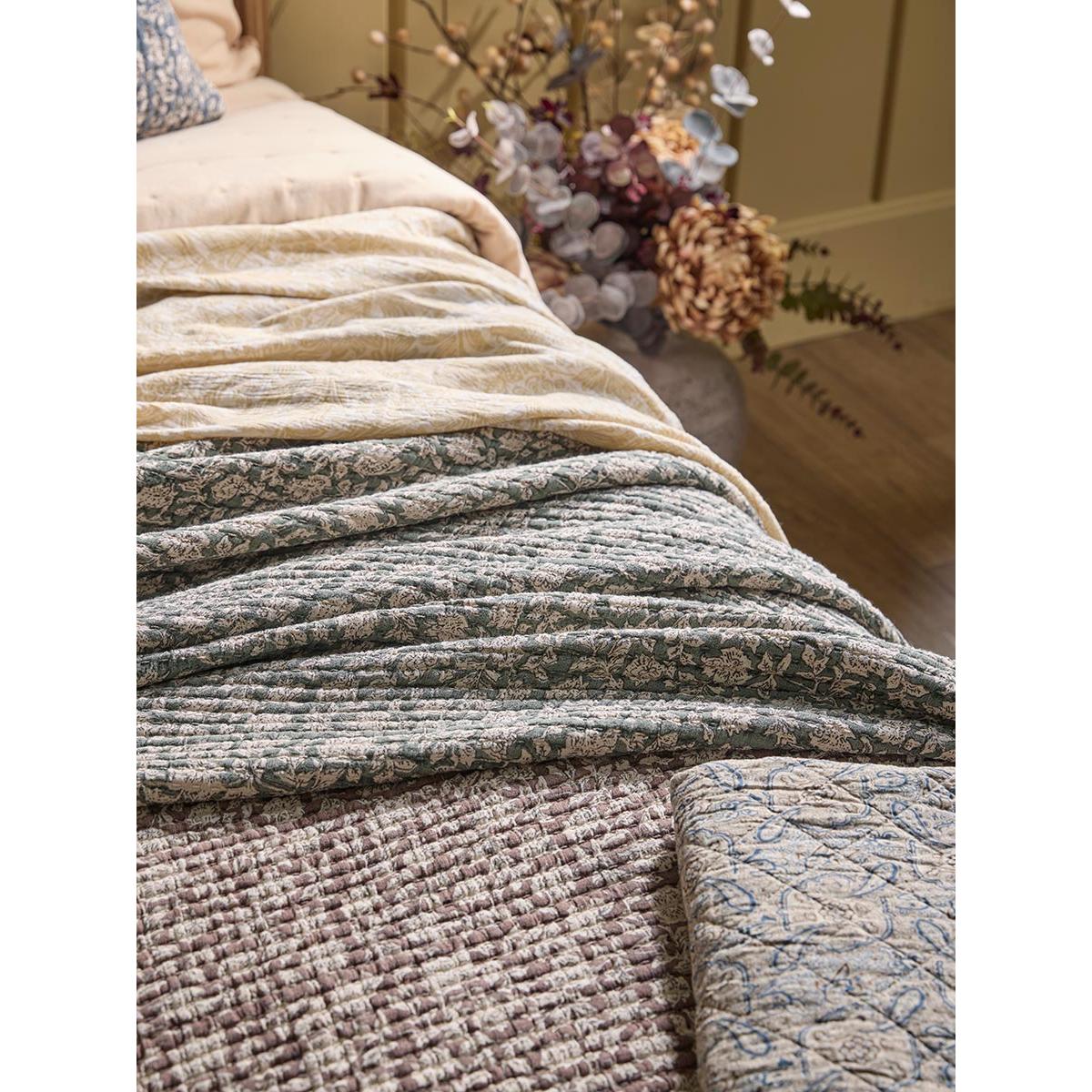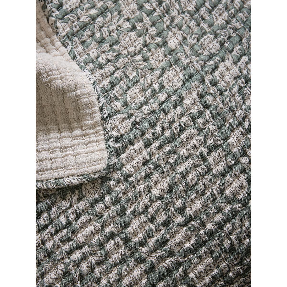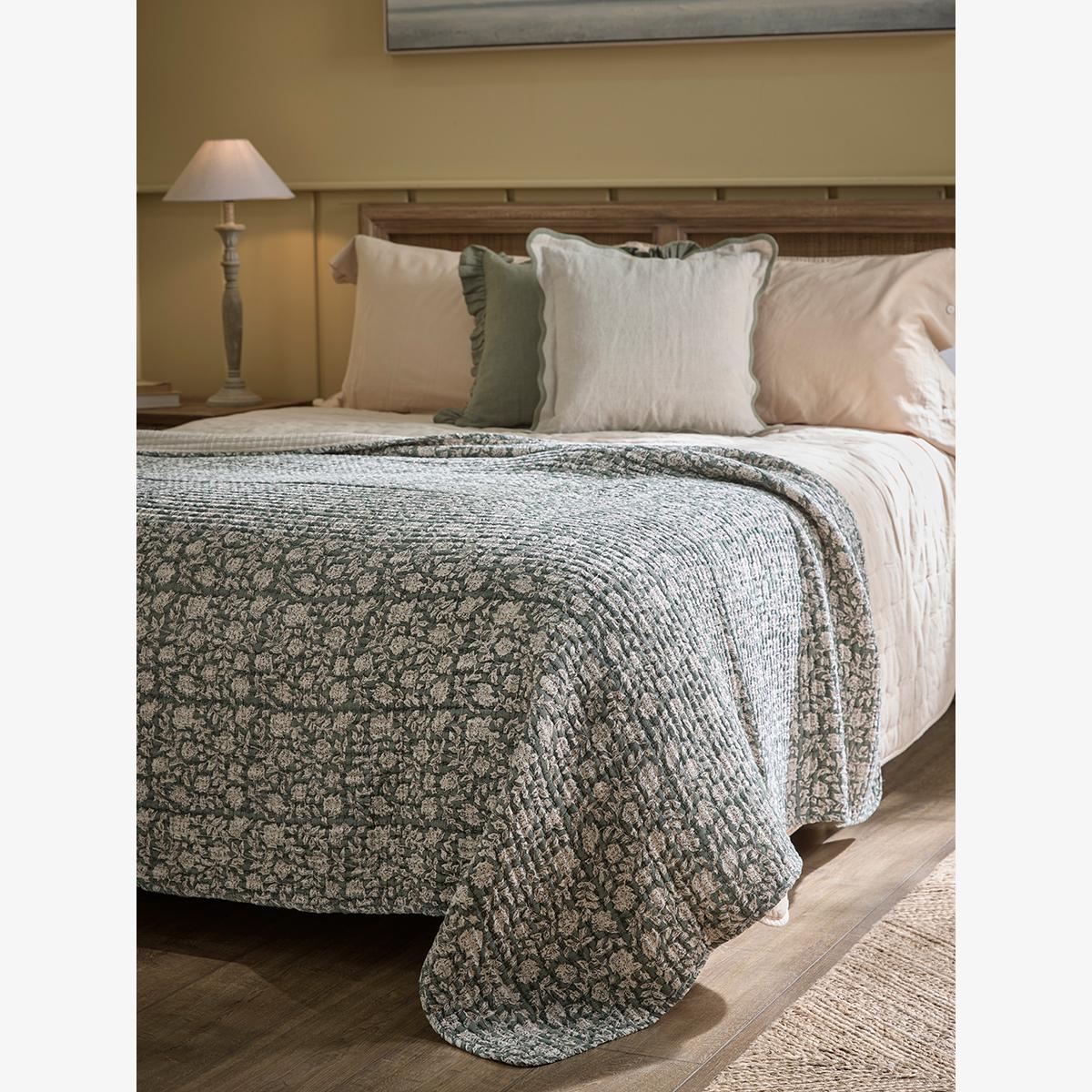 Bring the cottagecore vibe to your home with our Collette Quilted Bedspread. On a gorgeous sage green base, a delicate floral pattern sits in a patchwork style on the quilted throw, creating a sweet addition to your home. The lively pattern creates an eclectic and individual look that is the perfect fit in our English Rustic trend. Place on the end of your bed to bring extra warmth and comfort on those colder and cosier nights.
