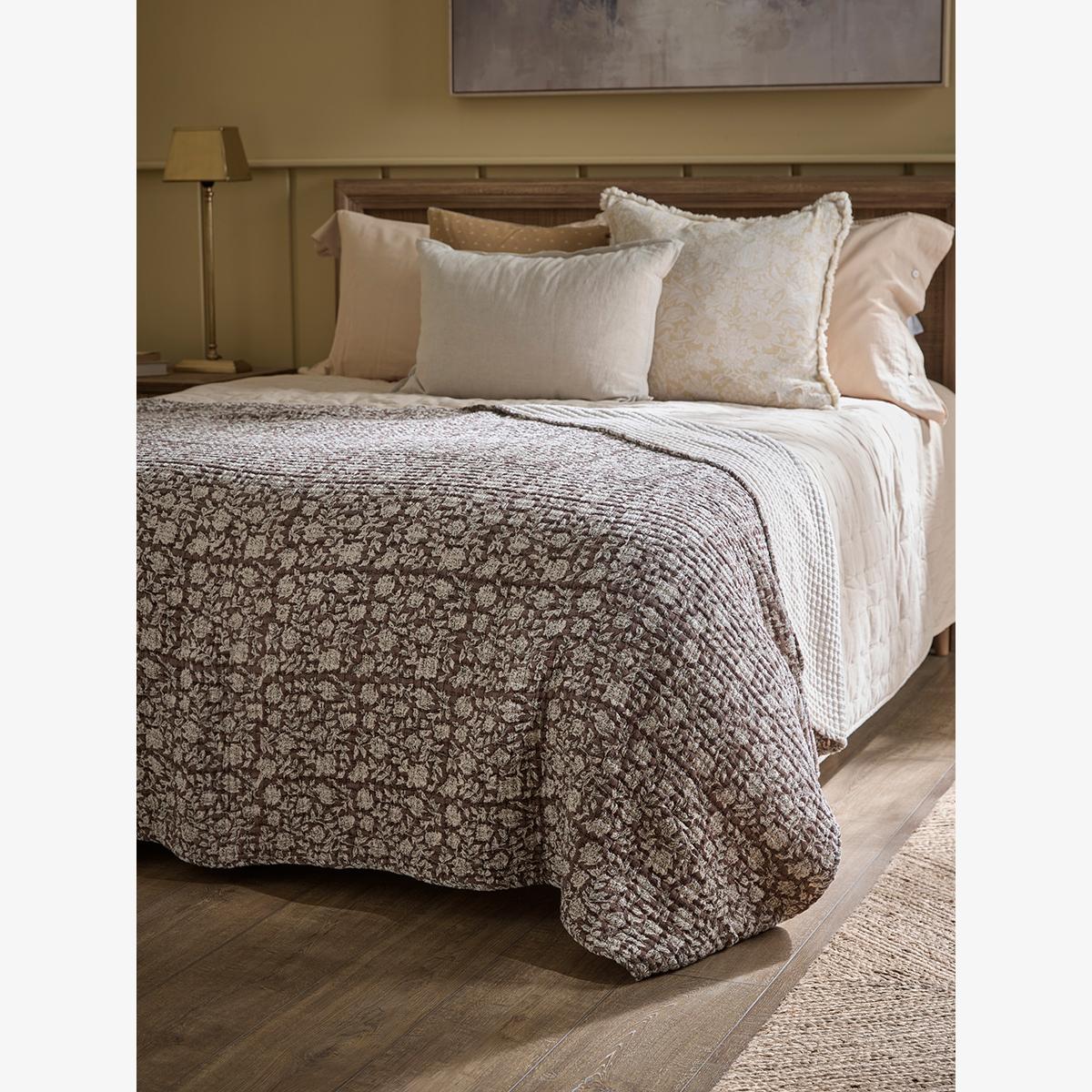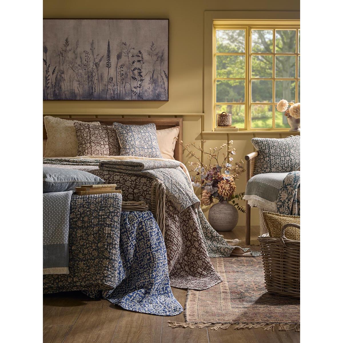Bring the cottagecore vibe to your home with our Collette Quilted Bedspread. On a warming, earthy base, a delicate floral pattern sits in a patchwork style on the quilted throw, creating a sweet addition to your home. The lively pattern creates an eclectic and individual look that is the perfect fit in our English Rustic trend. Place on the end of your bed to bring extra warmth and comfort on those colder and cosier nights.
