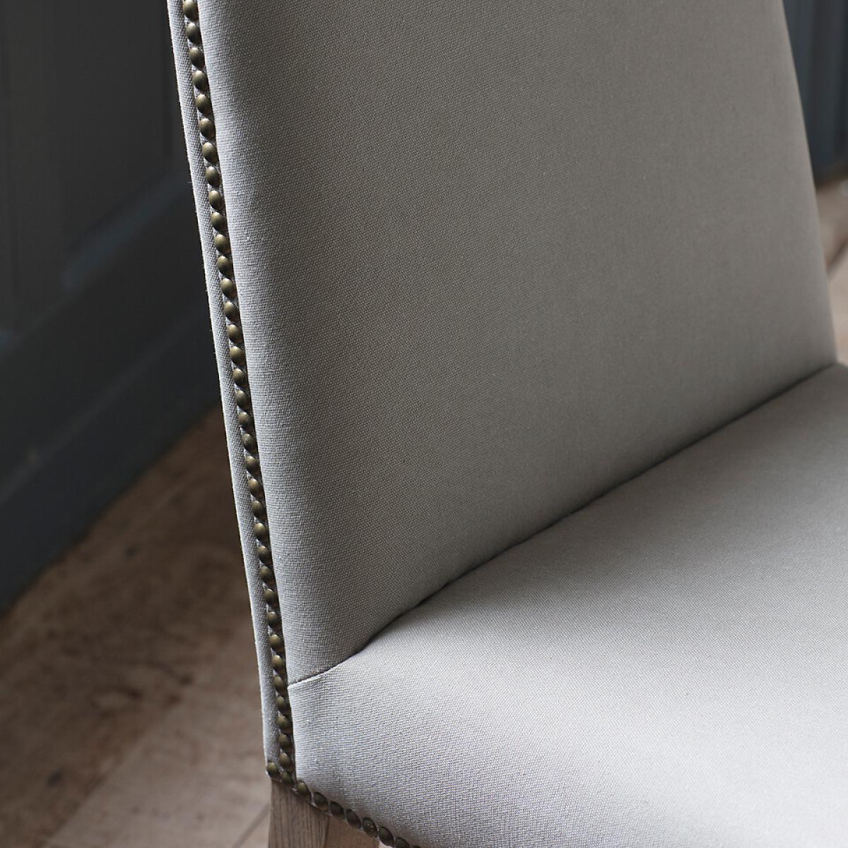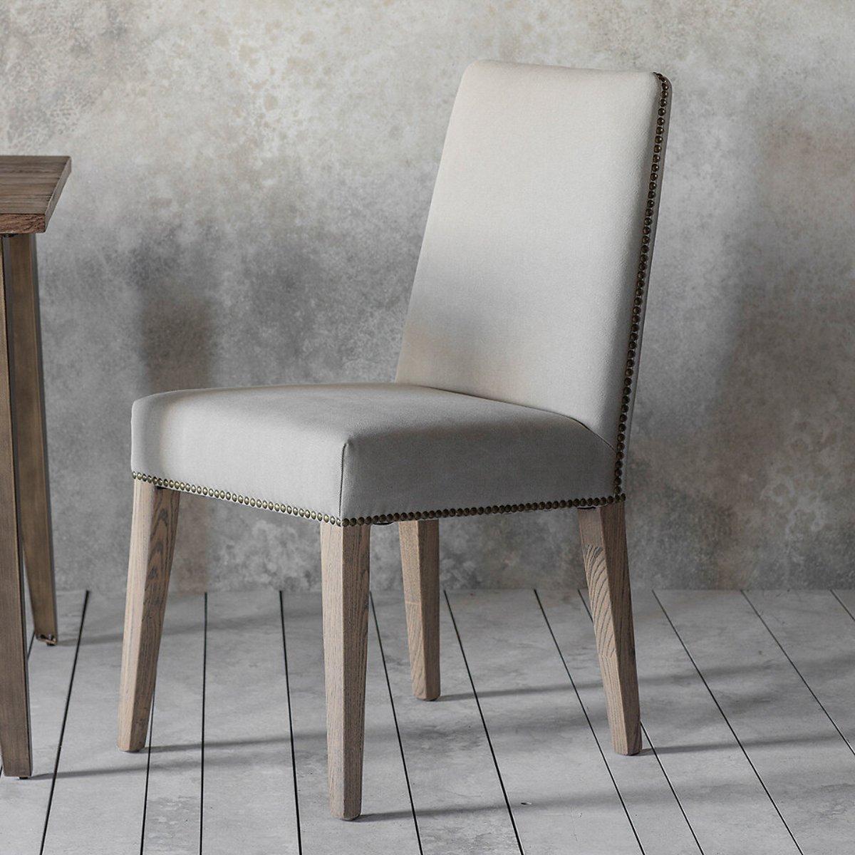 Upholstered in natural linen, this classic shaped dining chair set is sure to complement a wide range of dining room styles. Finished with an aged brass hand studden nailhead trim and angled solid ash legs. Product details. Linen upholstery Non removable cover. Assembly Required. Product Composition - Ash, Linen Product Dimensions - 59 cm x 46 cm x 91 cm , Weight - 14.8 KGSeat height- 49 cm Package Dimensions - 93 cm x 49 cm x 38 cm, Weight 16.55 kg. This product will be dispatched by one of our trusted suppliers. You’ll be contacted by their selected courier about your delivery. Please note: this product cannot be delivered to all Offshore Islands, Northern Ireland or Republic of Ireland. GALLE01