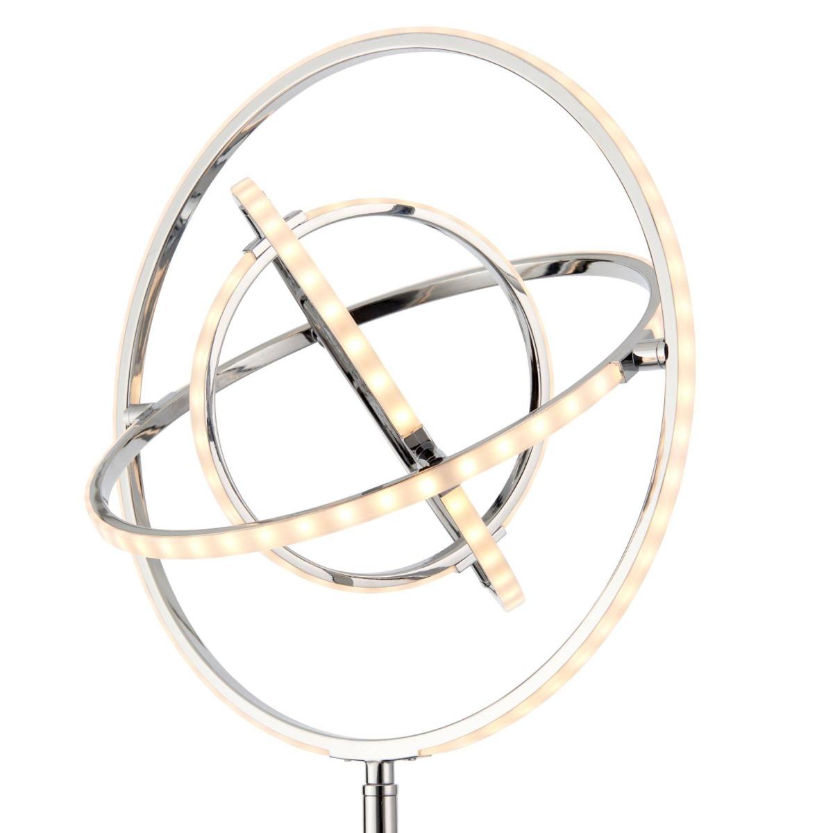 Contemporary warm white LED floor lamp finished in polished chrome. Modernise your interiors with the fabulous Colm LED floor lamp, a futuristic and modern floor lamp, exclusive to Pagazzi. A polished chrome frame creates 3 LED rings, all providing a warm white light, shone through white acrylic on the outer surface. Perfect for adding an ornamental element to interiors this statement floor lamp is perfect for living rooms, hallways or bedrooms. Check our the matching Colm LED table lamp, perfect for modernising living areas.