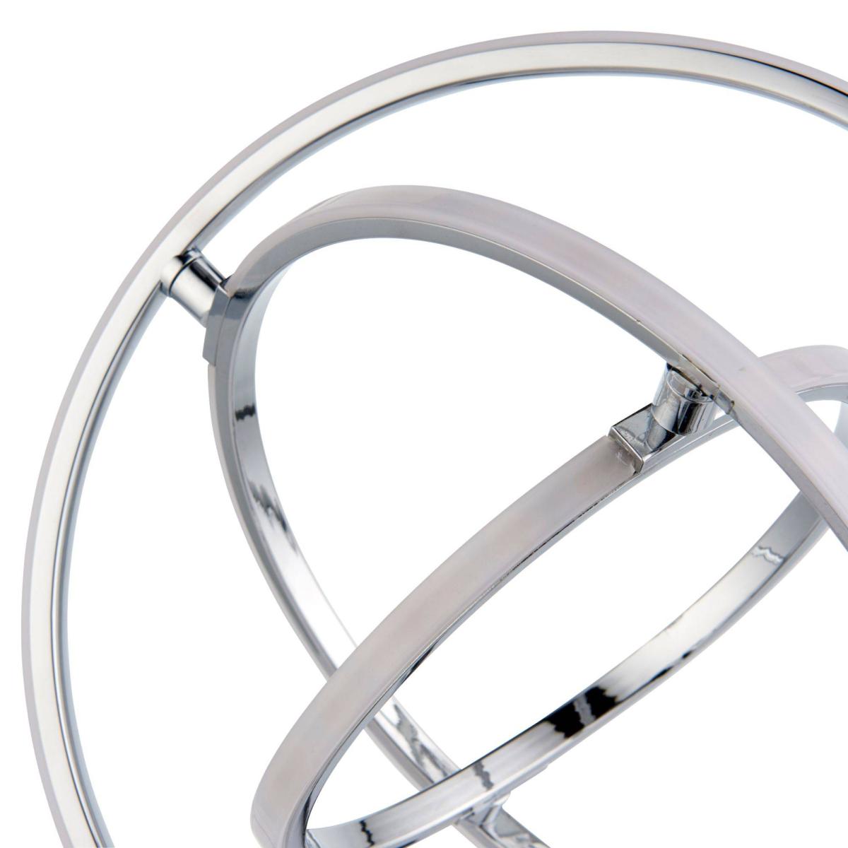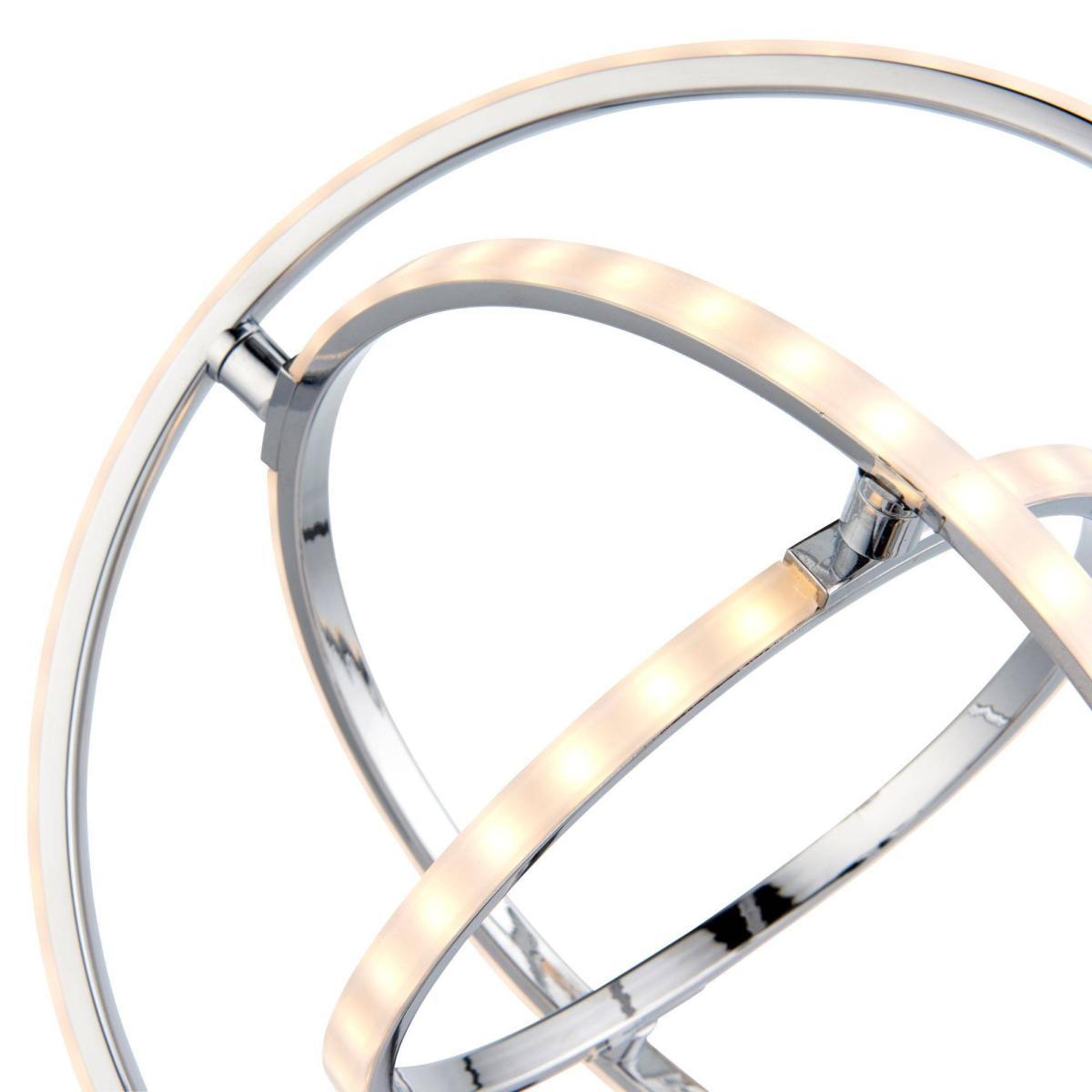 Contemporary warm white LED table lamp finished in polished chrome. Modernise your interiors with the fabulous Colm LED table lamp, a futuristic and modern table lamp, exclusive to Pagazzi. A polished chrome frame with white acrylic banding creates 3 LED rings, all providing a warm white light on the outer surface. Perfect for adding an ornamental element to interiors this statement table lamp is perfect for living rooms, hallways or bedside table lamps. Check our the matching Colm LED floor lamp, perfect for modernising living areas.