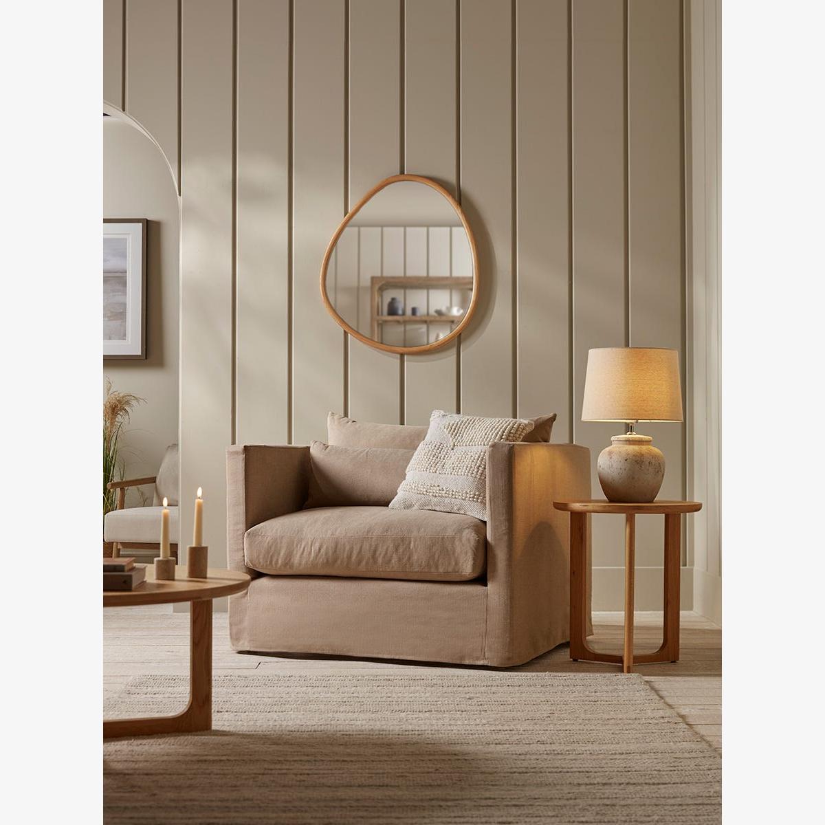 I love the Colmar Loveseat for its understated charm and versatile design. The barley cotton stripe adds visual interest without overwhelming, making it ideal for both contemporary and traditional interiors. It works particularly well in cosy living rooms, reading nooks, or even bedrooms where space is at a premium. For styling, consider pairing it with neutral-toned cushions and textured throws to enhance the tactile appeal and create a relaxed, inviting vibe. To keep the look modern, combine it with wooden or metallic accessories and subtle patterns, allowing the soft, classic fabric to remain the focal point. This piece is a smart addition for those seeking comfort with a touch of refined simplicity.