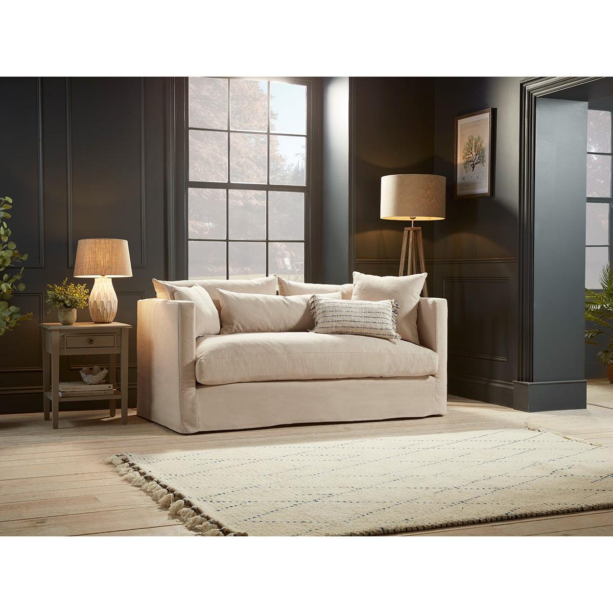Why sacrifice style for comfort when you can have both? Piled high with feather filled scatter cushions to sink into, our Colmar range is the perfect choice for laid back family homes. This relaxed made to order range includes the Colmar two seater sofa which marries the versatility of loose covers with welcoming boxy lines and slender arms which leave more width for stretching out. Handcrafted in the UK using traditional methods, our Colmar range makes a desirable addition to any living room. The Colmar range also includes an armchair. Pictured here in our Oat cotton linen, our Colmar collection can be upholstered in a choice of 30 distinctive shades and five fabrics to suit your style. Read our Upholstery FAQs View our full Upholstery Terms and Conditions