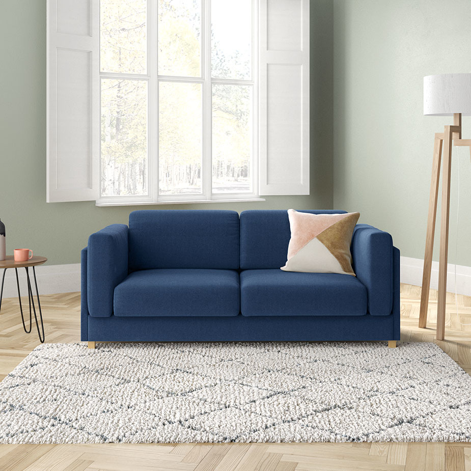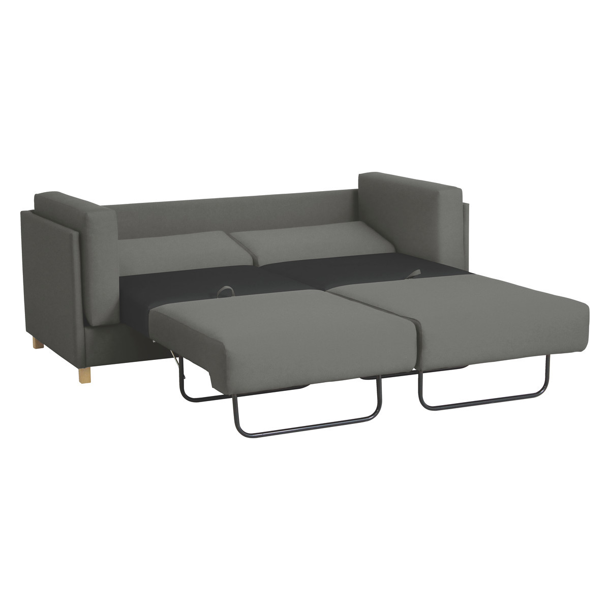 The Colombo charcoal fabric 3 seater sofa bed is a versatile design meaning you can easily turn your living room into a spare bedroom with ease. With a skinny box frame, clean lines and deep seat arm cushions, the sofa can easily transform into a spacious double bed with an easy pull-out mechanism. All you need to do is remove the cushions and pull out the frame underneath, leaving you with a sprung base and foam top for extra comfort. The sloped back cushions also double up as pillows and it can also be used as a single bed by only pulling out one side of the sofa. Tailored in durable, soft fabric, the Colombo sofa collection is a great investment piece if you’re short on space and is available in a variety of colours and sizes.