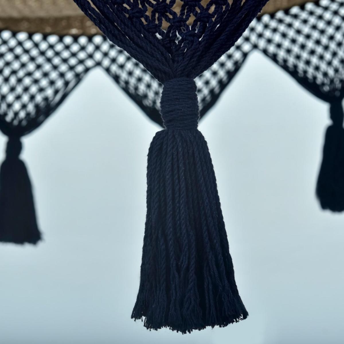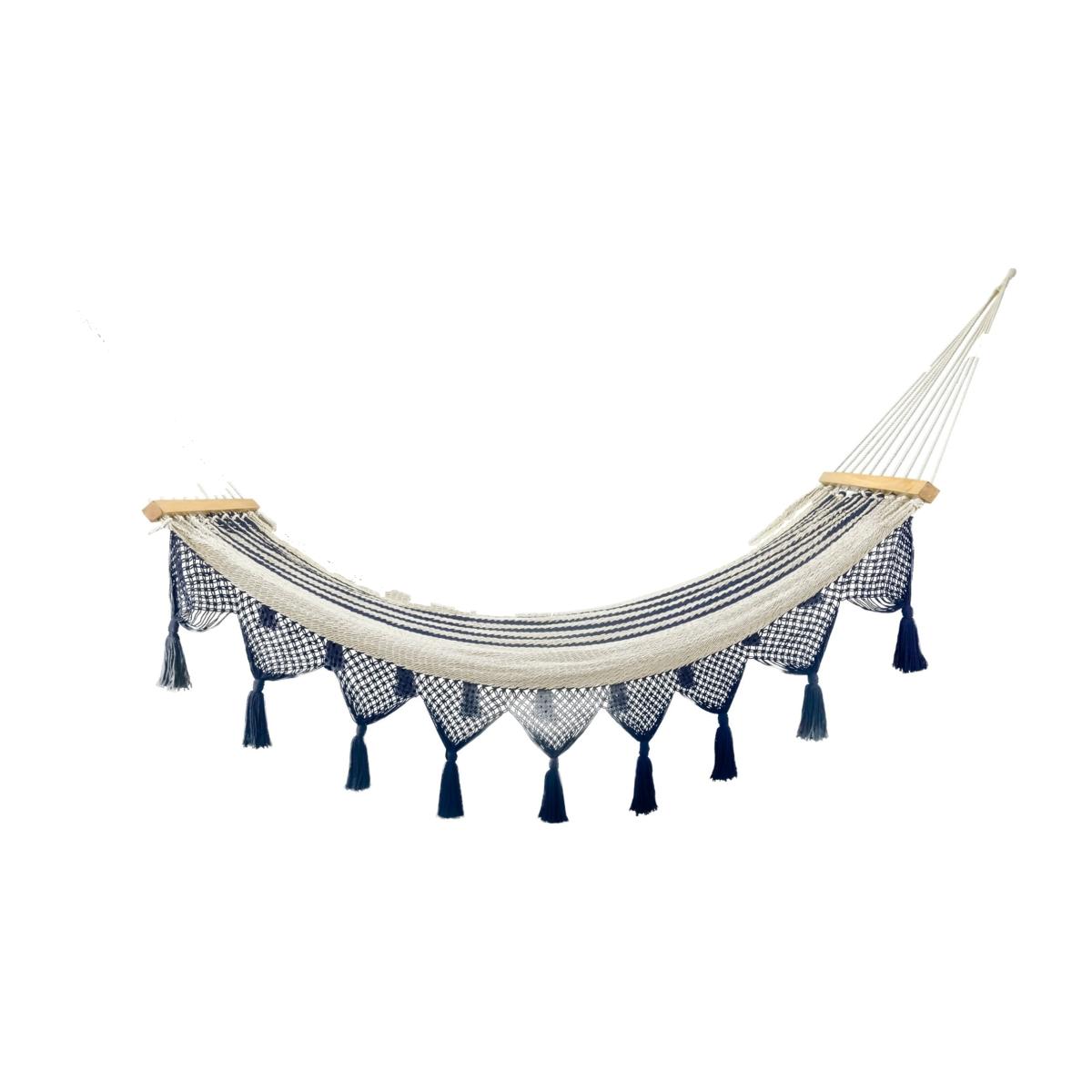 Colonial Navy Blue Cotton Hammock With Tassels - Teak Wooden Bar Artissanos