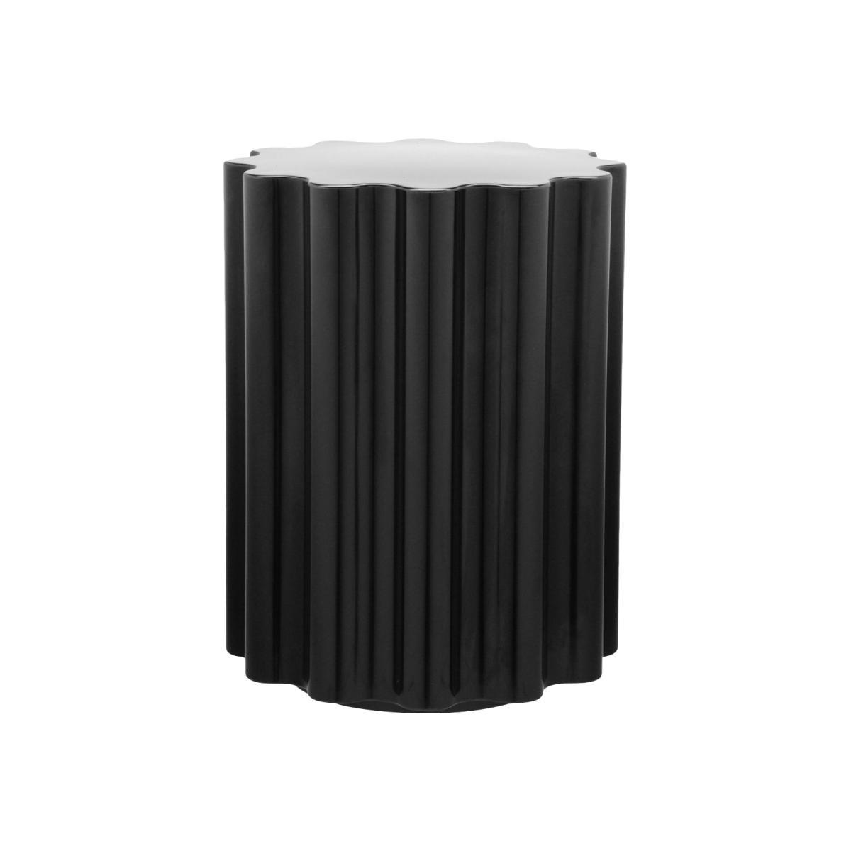 This stool is a versatile addition to any interior, thanks to its striking design and compact size. I love how the textured, ribbed surface adds a tactile element that’s both contemporary and tactilely interesting. Its black colour makes it incredibly adaptable, working equally well in modern, industrial, or even eclectic spaces. It’s perfect as a seating option in a living room, a side table in a bedroom, or as a statement piece in a hallway. For styling tips, try pairing it with a plush cushion on top to soften the look or stacking it with other stools for a layered, eclectic effect. Its durable construction also makes it practical for everyday use, making it a smart choice for both residential and commercial interiors.