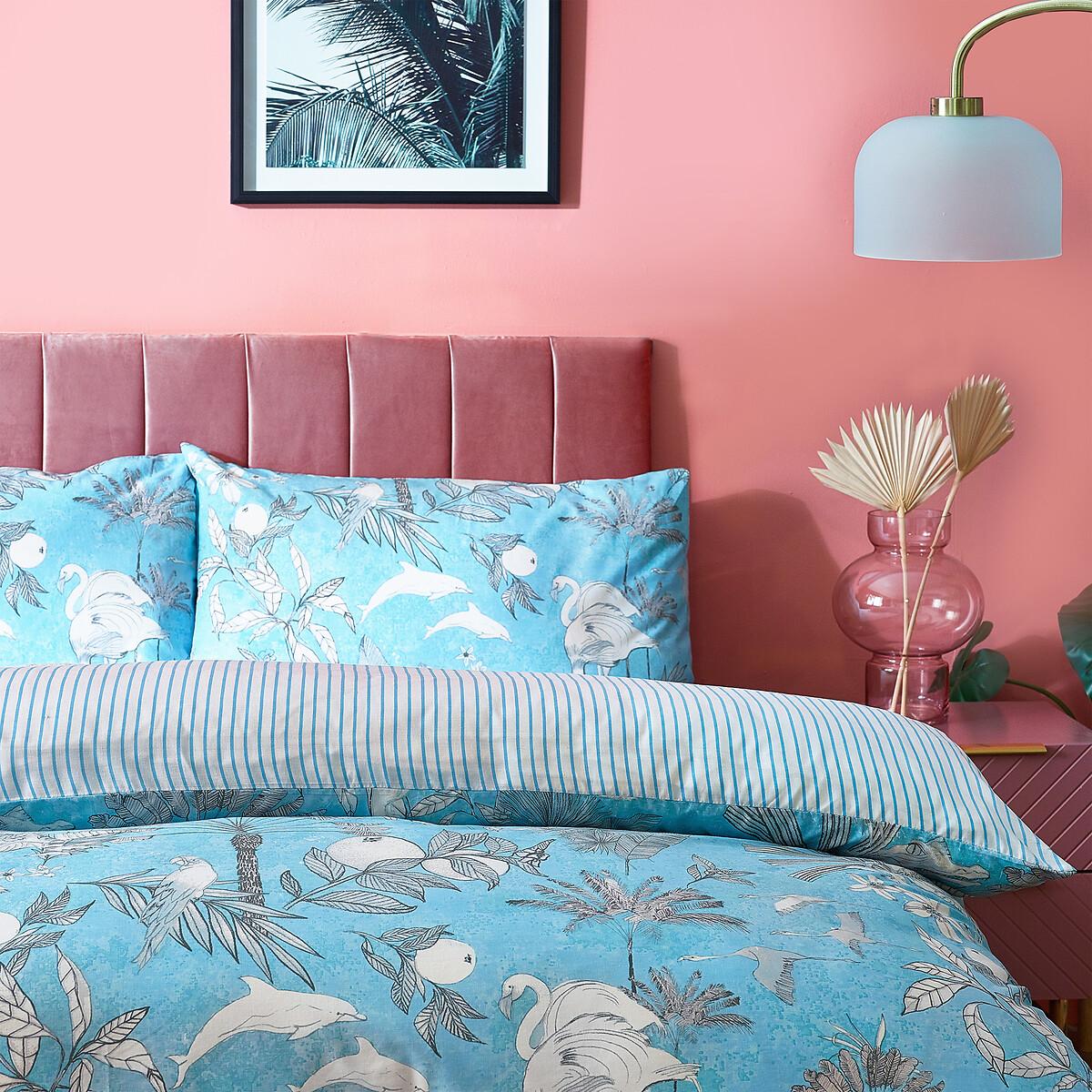 I love the Colony Palm bedding for its vibrant, tropical vibe that works well in both coastal and boho-inspired interiors. Its bold palm and wildlife prints add character and a touch of exotic charm, making it perfect for creating a relaxed yet stylish bedroom. Style tip: pair this duvet and pillowcase set with neutral or pastel walls to let the pattern stand out, and add textured accessories such as woven baskets or rattan furniture to enhance the tropical feel. It's also versatile enough to dress down with simple linens or layer with textured throws for a cosy, layered look.