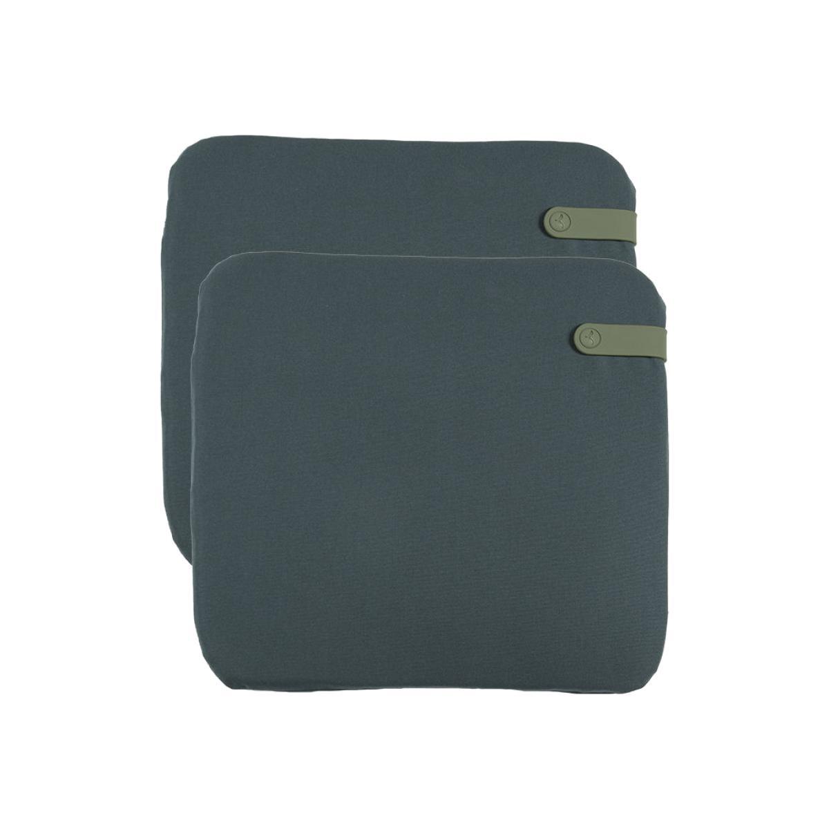 This duo of Color Mix seat cushions is the perfect finishing touch for Fermob's Luxembourg or Monceau low armchairs. Create an outdoor space that is resolutely modern without compromising on comfort. Not just a simple pair, this duo of seat cushions is the epitome of a 2-in-1 piece. Not just a seat cushion, it can be used as a padded backrest, individually or together as a pair. This piece has been designed to add a touch of comfort to your garden chair. Close your eyes and imagine it. Sunny days, enjoying drinks with friends: you can practically taste the summer vibes already. Your seat cushions can be attached to your chairs with a simple press-stud, and its PVC strap provides extra security. It's an innovative addition found on all items in the Color Mix collection, and which has certainly contributed to its success. As night falls, before settling in comfortably in a lounge chair on your terrace, think about adding the seat cushion to the backrest. Lounging never felt so good. The rounded forms and exclusive colourways of the Color Mix seat cushion duo can be elegantly mixed with the minimalist design of Fermob's metal furniture. For an inspired, cosy atmosphere. Just like all Fermob products, the seat cushion duo has been designed for easy use and easy care. Composed of a coloured acrylic Dralon® fabril, it's UV-resistant, as well as weather-, stain- and shock-resistant. These seat cushions have removable covers that can be machine-washed and be ready for use again in no time. Clever!.