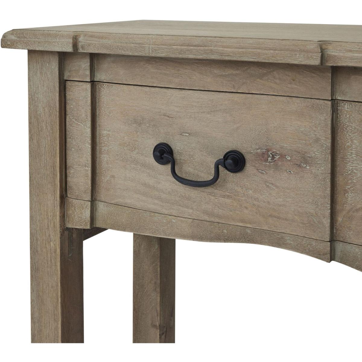 This is the Copgrove Collection 1 Drawer Console. With a full width, generous drawer space, set off by black ironwork handles this stylish console boasts useful storage and styling space within an elegant, handcrafted hard wood exterior. Evoking a classic style, the elegant hard wood, Copgrove collection offers all the elegance of French style furniture combined with contemporary touches. Its washed, bleached finish and black ironwork handles make this range capable of blending with the varied and ever evolving home accessories of your customer base. With each piece individually handcrafted from hard wood in a uniquely shaped design, bespoke to Hill Interiors, this collection will add distinction to homes, with a build quality to last.