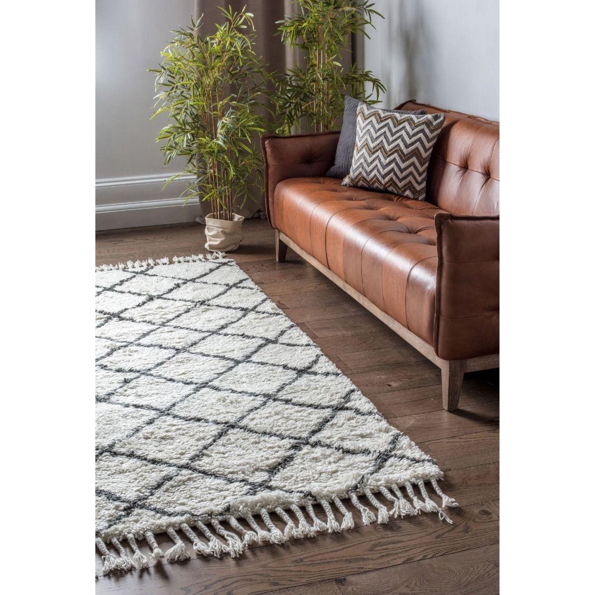 Stunning Rectangle Rug with White diamond design. This amazing soft wool rug is perfect for any home that would benefit from a comfortable, stylish addition. With a Black and white cross and contemporary design, this will fit in perfectly to both contemporary and traditional style rooms.