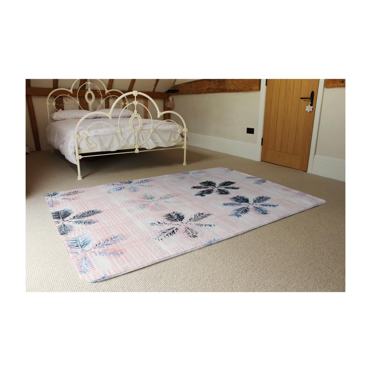 This pink rug with pine leaf motifs offers a playful yet sophisticated touch, making it a versatile addition to various interiors. I love how its colour adds warmth and charm, perfect for bedrooms or cosy living spaces. It works particularly well in schemes that incorporate soft pastels or neutral tones, providing a gentle pop of colour without overwhelming the room. Practical styling tips include layering it over a larger neutral rug for added texture or pairing it with complementary pink accessories for a cohesive look. Its playful pattern also makes it ideal for a children’s bedroom or a relaxed, eclectic scheme. Keep the surrounding decor simple to let the rug be a standout feature.