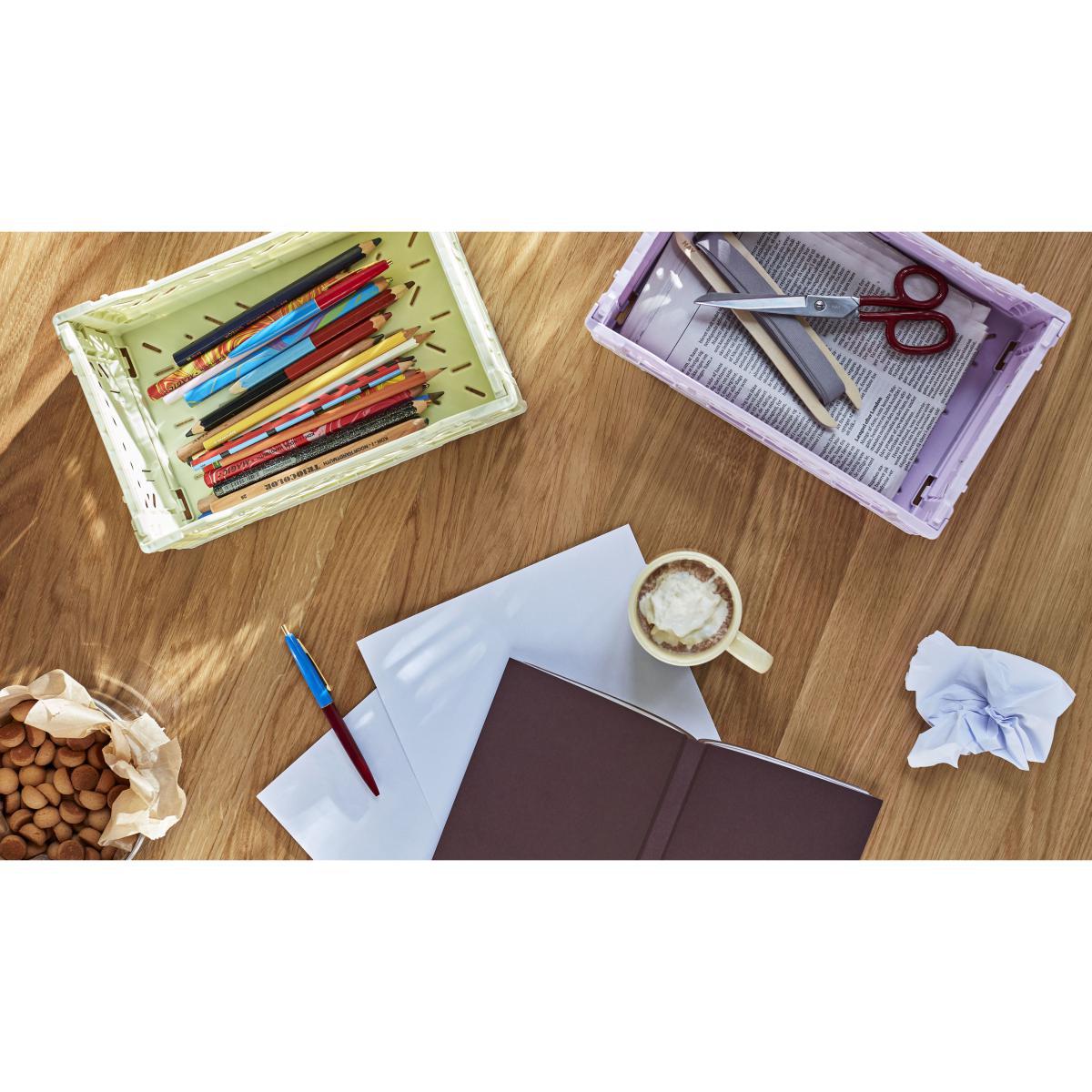 Hay revises the classics and gives us a fun, colourful version of traditional vegetable crates. Available in a superb palette of current colours, these plastic storage units have an industrial, quirky, trendy look. True bestsellers from the Danish brand Hay, Colour Crate storage units are both decorative and ultra-functional. Colour Crate boxes are stackable, foldable, light, strong and easy to clean. They let you organise everything: from the kitchen to the office, via the bedroom, bathroom, laundry room and garage. These storage units can safely come into contact with food: you can put fruit and vegetables in them. These storage units are also perfect for organising the contents of your fridge or cupboards. To brighten up your decor, feel free to mix the colours!.