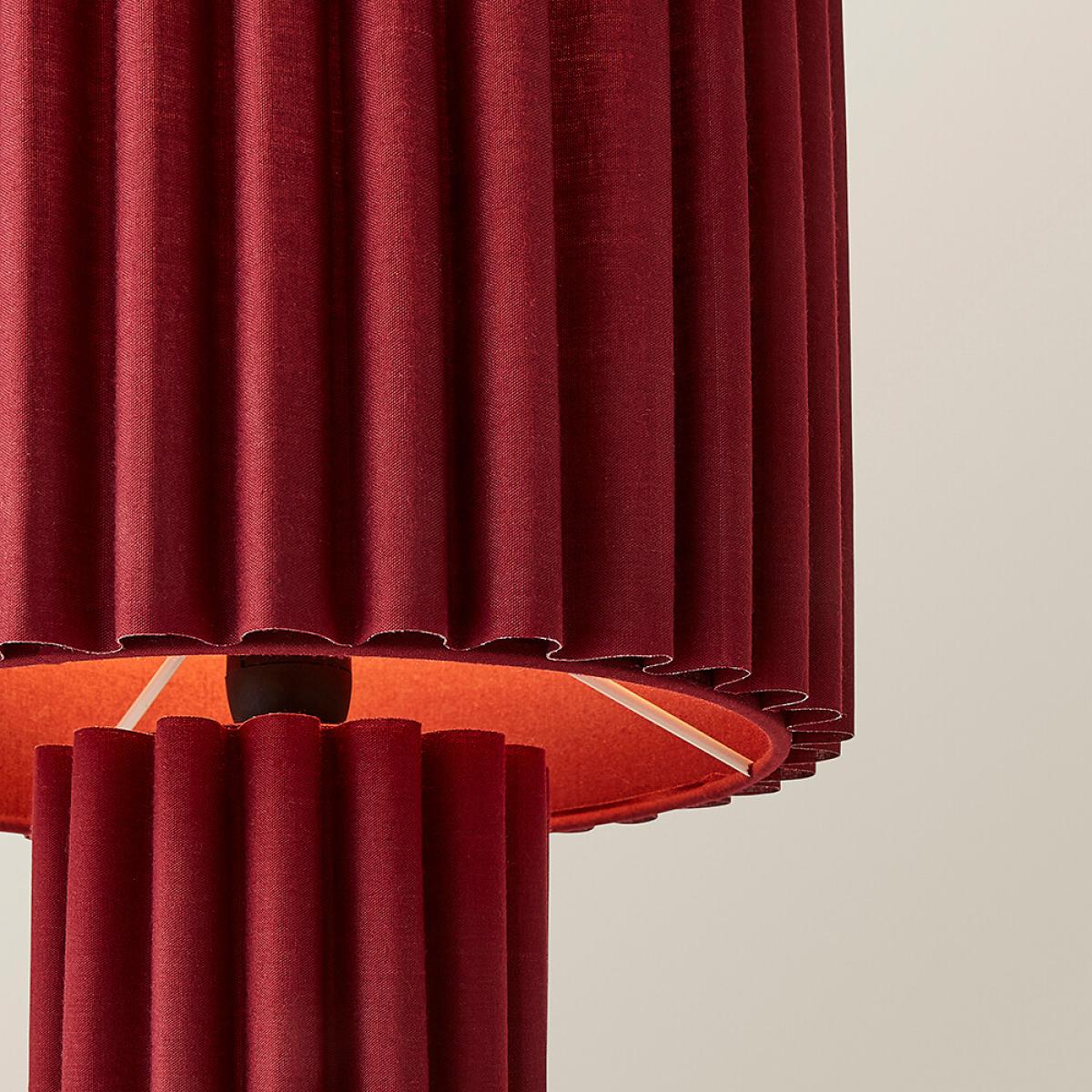 I love this lamp for its bold texture and contemporary silhouette. The ribbed fabric adds a sophisticated tactile element that works well in modern or eclectic interiors, especially when you want a statement piece that also offers warm, diffused lighting. It’s particularly effective in neutral or muted colour schemes, where its rich red shade can serve as an eye-catching focal point. For styling, try pairing it with minimal furniture or layered textures to keep the focus on the lamp’s unique design. It’s a versatile piece that can be used on sideboards, consoles, or even as a bedside lamp, providing both visual interest and practical illumination.