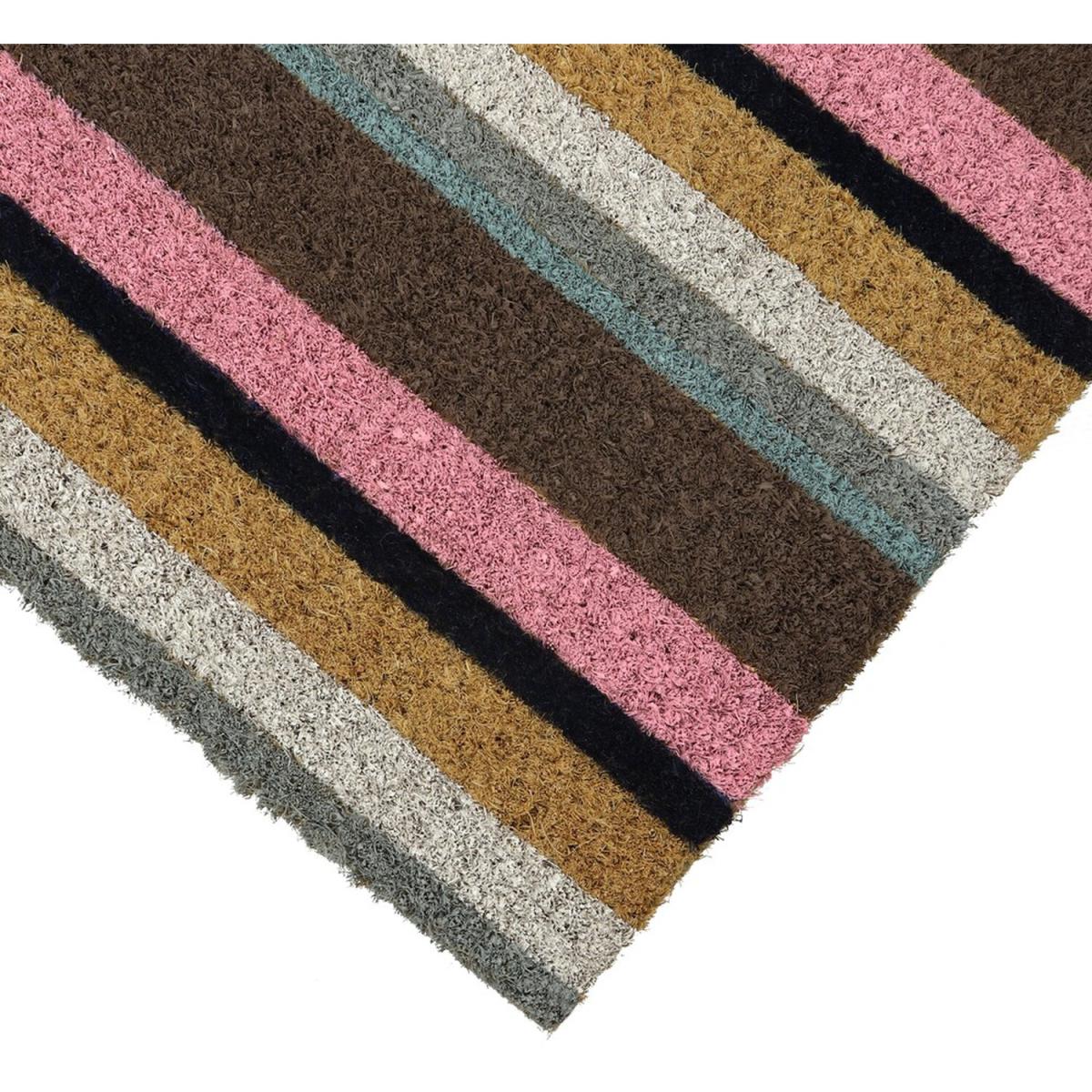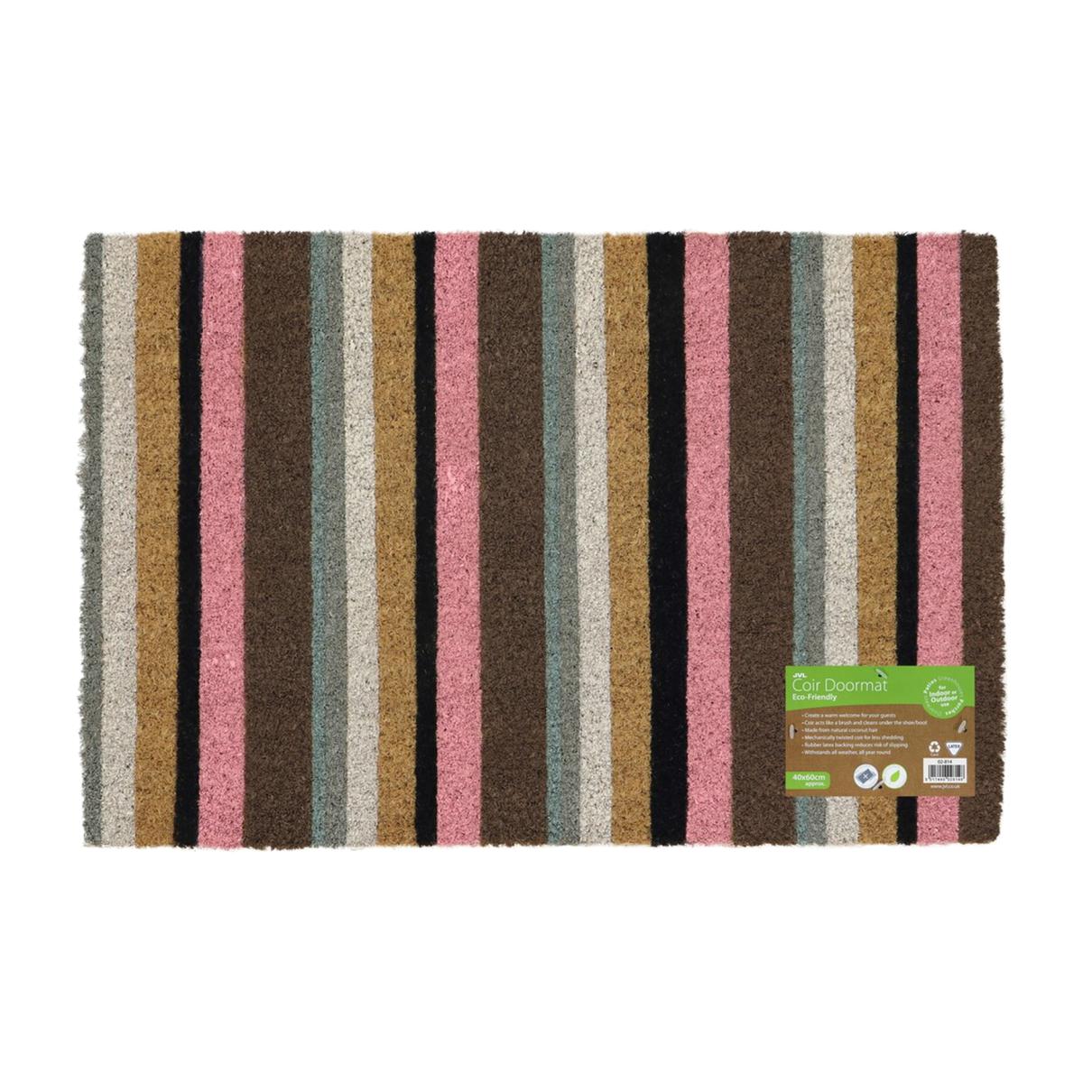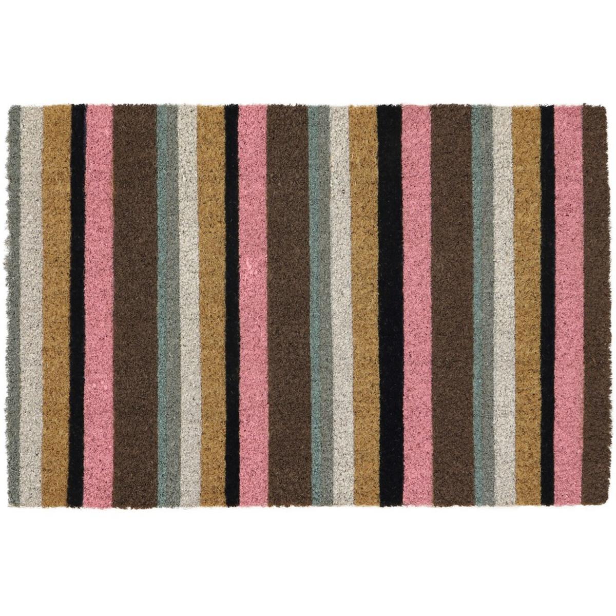 I love this coir mat for its bold, colourful stripe pattern, which instantly adds a lively touch to any entrance. Its latex backing ensures it stays firmly in place, making it practical for high-traffic areas. This door mat works particularly well in contemporary or mid-century styled homes, but its versatile design can also complement more eclectic or colourful exteriors. For styling tips, try pairing it with neutral-toned door schemes to make the pattern pop, or coordinate it with accessories in similar colours for a cohesive look. Its durable natural fibre and vibrant design make it both functional and a stylish first impression for visitors.