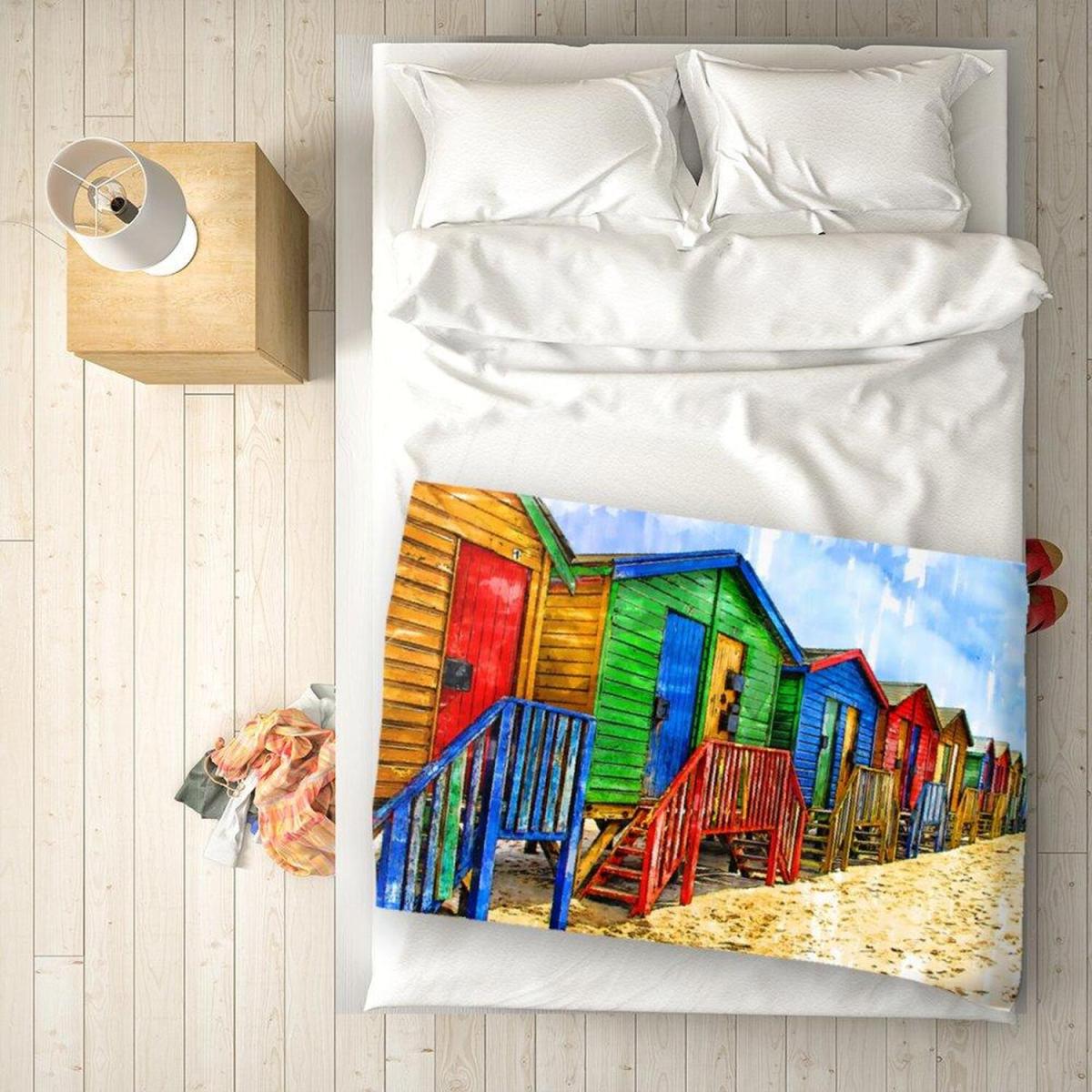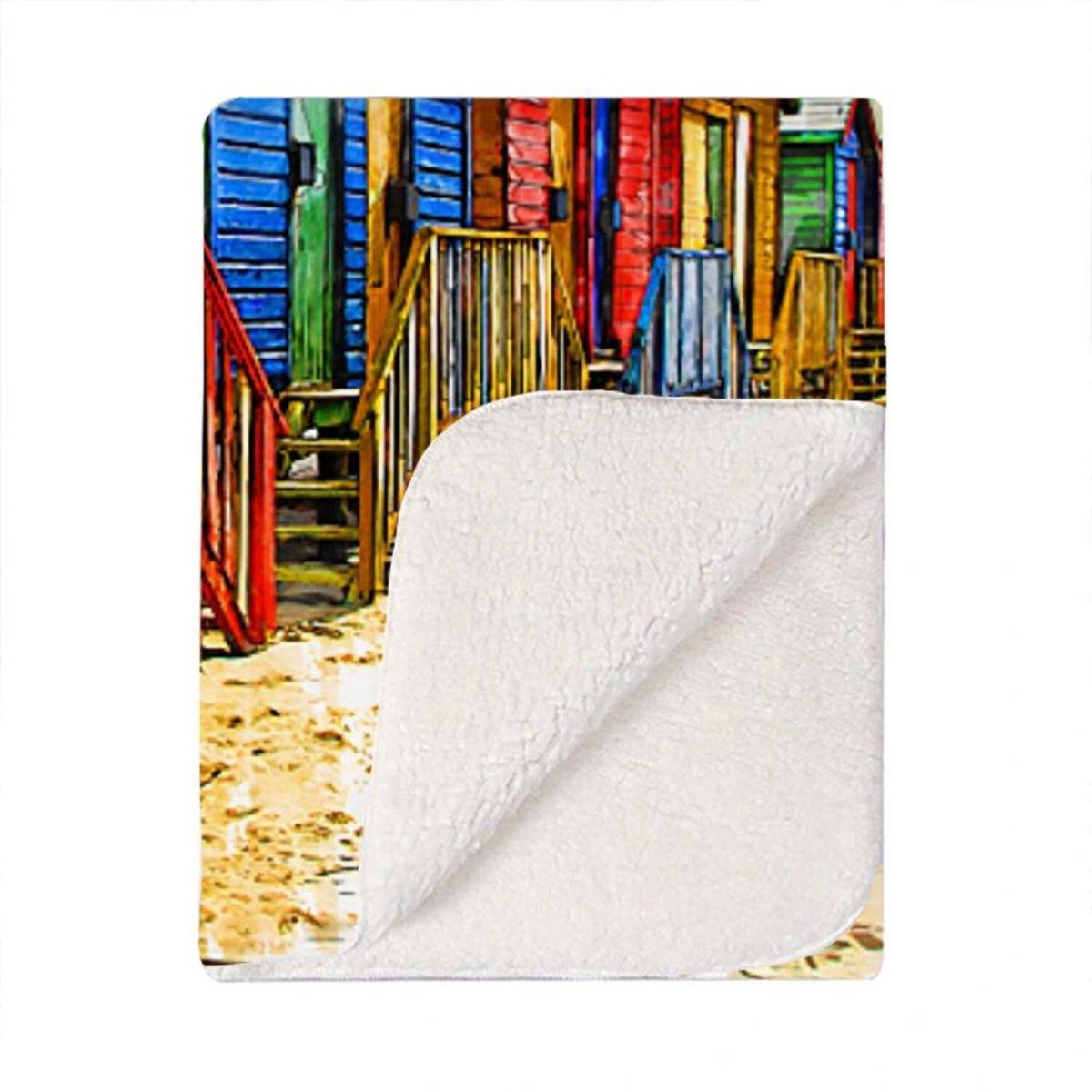 Colourful Beach Cottages Sketch Blanket - Blue